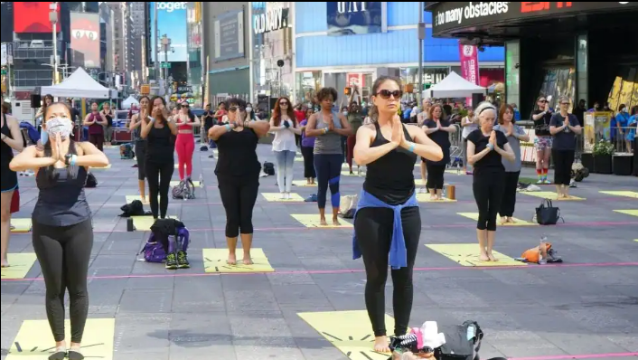 सातवां अंतर्राष्ट्रीय योग दिवस रविवार को न्यूयॉर्क के प्रतिष्ठित टाइम्स स्क्वायर में मनाया गया। “टाइम्स स्क्वायर 2021 में संक्रांति” की थीम के साथ दिन भर चलने वाले योग उत्सव में 3,000 से अधिक लोगों ने भाग लिया, जहां योगियों ने अपने योग मैट और लचीले शरीर के साथ, गर्मियों की शुरुआत को चिह्नित करने के लिए टाइम्स स्क्वायर को भर दिया।