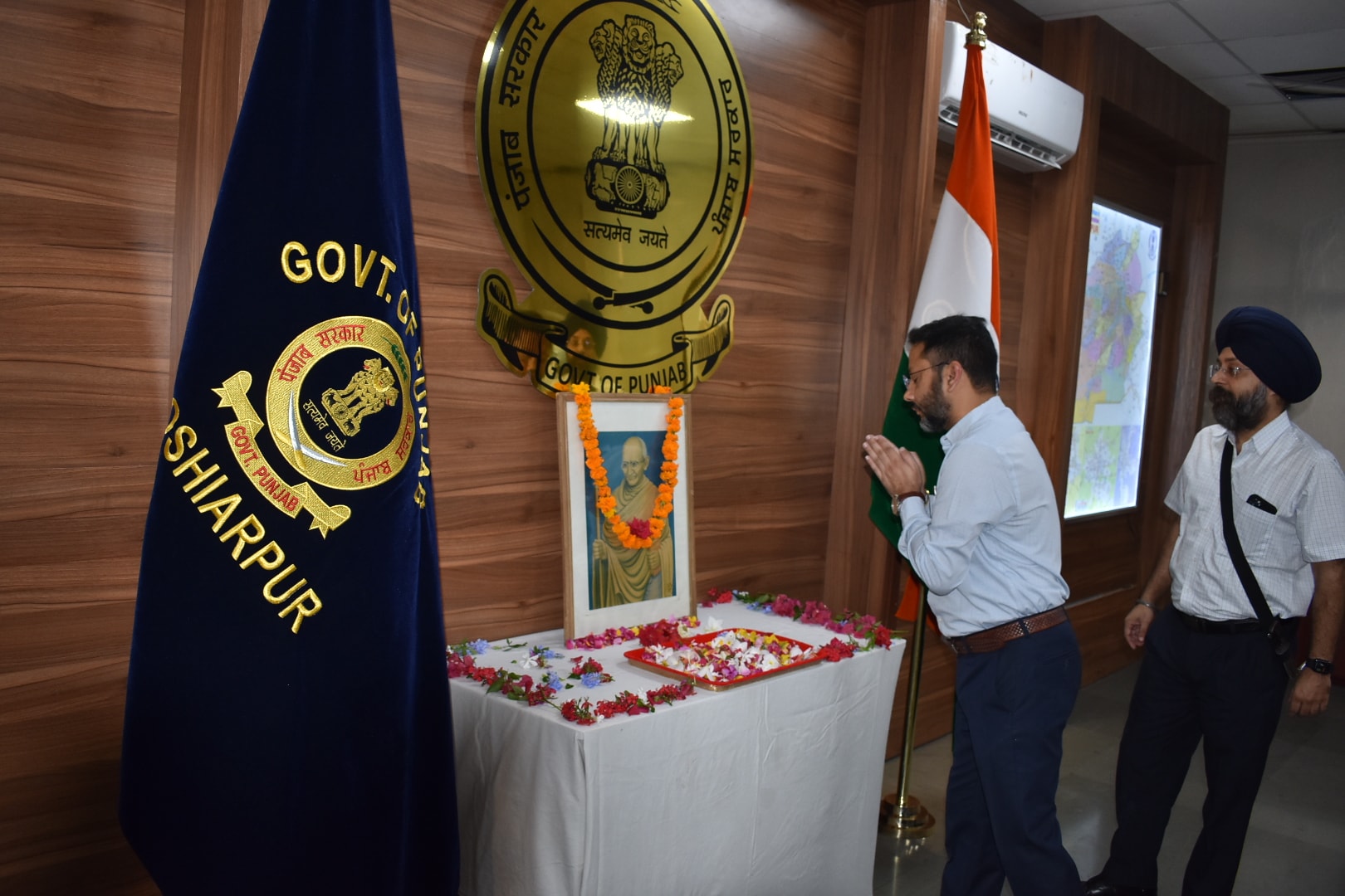 ਹੁਸ਼ਿਆਰਪੁਰ, 2 ਅਕਤੂਬਰ (ਨਿਊਜ਼ ਹੰਟ)- ਰਾਸ਼ਟਰਪਿਤਾ ਮਹਾਤਮਾ ਗਾਂਧੀ ਜੀ ਦੇ 152ਵੇਂ ਜਨਮ ਦਿਵਸ ’ਤੇ ਐਸ.ਡੀ.ਐਮ. ਸ਼ਿਵਰਾਜ ਸਿੰਘ ਬੱਲ ਤੋਂ ਇਲਾਵਾ ਹੋਰ ਪ੍ਰਸ਼ਾਸਨਿਕ ਤੇ ਪੁਲਿਸ ਅਧਿਕਾਰੀਆਂ ਵਲੋਂ ਜ਼ਿਲ੍ਹਾ ਪ੍ਰਬੰਧਕੀ ਕੰਪਲੈਕਸ ਵਿਚ ਰਾਸ਼ਟਰਪਿਤਾ ਮਹਾਤਮਾ ਗਾਂਧੀ ਜੀ ਨੂੰ ਸ਼ਰਧਾ ਦੇ ਫੁੱਲ ਭੇਟ ਕੀਤੇ ਗਏ। ਇਸ ਦੌਰਾਨ ਉਨ੍ਹਾਂ ਨਾਲ ਐਸ.ਪੀ. ਆਰ.ਪੀ.ਐਸ. ਸੰਧੂ, ਸਹਾਇਕ ਕਮਿਸ਼ਨਰ (ਜ) ਕਿਰਪਾਲ ਵੀਰ ਸਿੰਘ, ਜ਼ਿਲ੍ਹਾ ਵਿਕਾਸ ਤੇ ਪੰਚਾਇਤ ਅਫ਼ਸਰ ਸਰਬਜੀਤ ਸਿੰਘ ਬੈਂਸ, ਸਹਾਇਕ ਲੋਕ ਸੰਪਰਕ ਅਫ਼ਸਰ ਲੋਕੇਸ਼ ਕੁਮਾਰ ਤੋਂ ਇਲਾਵਾ ਹੋਰ ਅਧਿਕਾਰੀ ਵੀ ਮੌਜੂਦ ਸਨ।