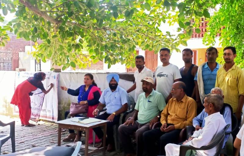 ਪਠਾਨਕੋਟ, 4 ਅਕਤੂਬਰ (ਨਿਊਜ਼ ਹੰਟ)- ਵਾਟਰ ਸਪਲਾਈ ਅਤੇ ਸੈਨੀਟੇਸ਼ਨ ਵਿਭਾਗ ਪਠਾਨਕੋਟ ਵੱਲੋਂ ਜਿਲ੍ਹਾ ਪਠਾਨਕੋਟ ਵਿੱਚ ਪਾਣੀ ਦੀ ਸੰਭਾਲ ਨੂੰ ਲੇ ਕੇ ਇੱਕ ਮੁਹਿੰਮ ਚਲਾਈ ਜਾ ਰਹੀ ਹੈ ਜਿਸ ਅਧੀਨ ਵੱਖ ਵੱਖ ਪਿੰਡਾਂ ਵਿੱਚ ਵਿਸ਼ੇਸ ਕੈਂਪ ਲਗਾ ਕੇ ਲੋਕਾਂ ਨੂੰ ਪਾਣੀ ਦੀ ਸੰਭਾਲ ਕਰਨ ਪ੍ਰਤੀ ਜਾਗਰੁਕ ਕੀਤਾ ਜਾ ਰਿਹਾ ਹੈ। ਜਿਸ ਅਧੀਨ ਜਿਲ੍ਹਾ ਪਠਾਨਕੋਟ ਦੇ ਪਿੰਡ ਮਦਾਰਪੁਰ, ਮਲਕਾਨਾ ਅਤੇ ਹਯਾਤੀ ਚੱਕ ਤਿੰਨ ਪਿੰਡਾਂ ਵਿੱਚ ਸ੍ਰੀ ਮਹੇਸ਼ ਕੁਮਾਰ ਐਕਸੀਅਨ ਵਾਟਰ ਸਪਲਾਈ ਤੇ ਸੈਨੀਟੇਸ਼ਨ ਪਠਾਨਕੋਟ ਦੇ ਨਿਰਦੇਸ਼ਾਂ ਅਨੁਸਾਰ ਜਾਗਰੁਕਤਾ ਪ੍ਰੋਗਰਾਮ ਆਯੋਜਿਤ ਕੀਤੇ ਗਏ। ਪ੍ਰੋਗਰਾਮ ਵਿੱਚ ਸ੍ਰੀਮਤੀ ਨੀਲਮ ਚੋਧਰੀ ਸੀ.ਡੀ. ਐਸ. ਡਿਵੀਜਨ 1 ਵਾਟਰ ਸਪਲਾਈ ਸੈਨੀਟੇਸ਼ਨ ਪਠਾਨਕੋਟ , ਸ੍ਰੀ ਰਾਜੀਵ ਸਰਮਾ ਪੰਚਾਇਤ ਸਕੱਤਰ , ਸਰਪੰਚ ਸਵਿਤਾ ਸਰਮਾ, ਰਾਕੇਸ ਸਰਮਾ, ਸੰਯੋਗਿਤਾ, ਰਾਣੀ, ਪ੍ਰਵੇਸ ਰਾਣੀ, ਸਾਬਕਾ ਸਰਪੰਚ ਰਾਮੇਸ ਕੁਮਾਰੀ ਆਦਿ ਹਾਜ਼ਰ ਸਨ।