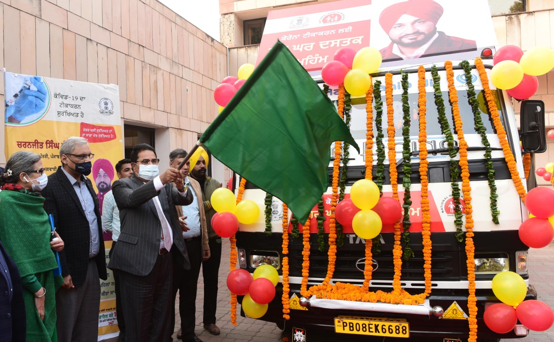 ਮੌਜੂਦਾ ਸਮੇਂ ਕੋਰੋਨਾ ਦੇ ਨਵੇਂ ਵੇਰੀਐਂਟ ਓਮੀਕਰੋਨ ਦੇ ਖਤਰੇ ਦੇ ਨਾਲ-ਨਾਲ ਕੋਵਿਡ ਦੀ ਤੀਜੀ ਲਹਿਰ ਦੀ ਕਿਸੇ ਵੀ ਸੰਭਾਵਨਾ ਨੂੰ ਟਾਲਣ ਦੇ ਮੱਦੇਨਜ਼ਰ, ਉਪ ਮੁੱਖ ਮੰਤਰੀ ਓ.ਪੀ. ਸੋਨੀ ਨੇ ਪੰਜਾਬ ਵਿੱਚ ਸੌ ਫੀਸਦੀ ਟੀਕਾਕਰਨ ਨੂੰ ਯਕੀਨੀ ਬਣਾਉਣ ਲਈ ਹਰ ਘਰ ਦਸਤਕ ਮੁਹਿਮ ਤਹਿਤ ਹਰੀ ਝੰਡੀ ਦੇ ਕੇ ਪੰਜ ਜਾਗਰੂਕਤਾ ਵੈਨਾਂ ਨੂੰ ਰਵਾਨਾ ਕੀਤਾ।
