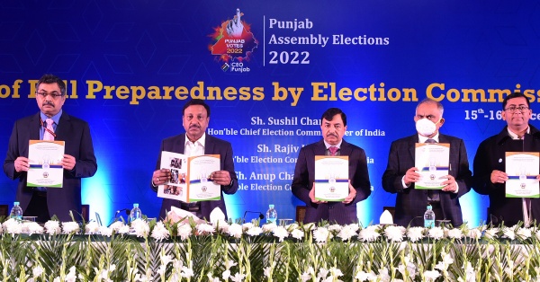 ਪੰਜਾਬੀ ਬੋਲੀਆਂ ਤੇ ਤਾੜੀਆਂ ਦੀ ਗੂੰਜ ਅਤੇ ਗਿੱਧਾ ਪ੍ਰਦਰਸ਼ਨ ਦੌਰਾਨ, ਮੁੱਖ ਚੋਣ ਕਮਿਸ਼ਨਰ ਸ੍ਰੀ ਸੁਸ਼ੀਲ ਚੰਦਰ ਨੇ ਚੋਣ ਕਮਿਸ਼ਨਰ ਸ੍ਰੀ ਰਾਜੀਵ ਕੁਮਾਰ ਅਤੇ ਚੋਣ ਕਮਿਸ਼ਨਰ ਸ੍ਰੀ ਅਨੂਪ ਚੰਦਰ ਪਾਂਡੇ ਦੇ ਨਾਲ ਵੋਟਰ ਜਾਗਰੂਕਤਾ ਮੁਹਿੰਮ ਦੇ ਹਿੱਸੇ ਵਜੋਂ ਵੋਟਰ ਜਾਗਰੂਕਤਾ ਵੈਨ ਨੂੰ ਸੂਬੇ ਵਿੱਚ ਹਰੀ ਝੰਡੀ ਦੇ ਕੇ ਰਵਾਨਾ ਕੀਤਾ। ਇਸ ਮੌਕੇ ਪੰਜਾਬ ਦੇ ਮੁੱਖ ਚੋਣ ਅਫ਼ਸਰ (ਸੀ.ਈ.ਓ.) ਡਾ. ਐਸ. ਕਰੁਣਾ ਰਾਜੂ ਵੀ ਮੌਜੂਦ ਸਨ।