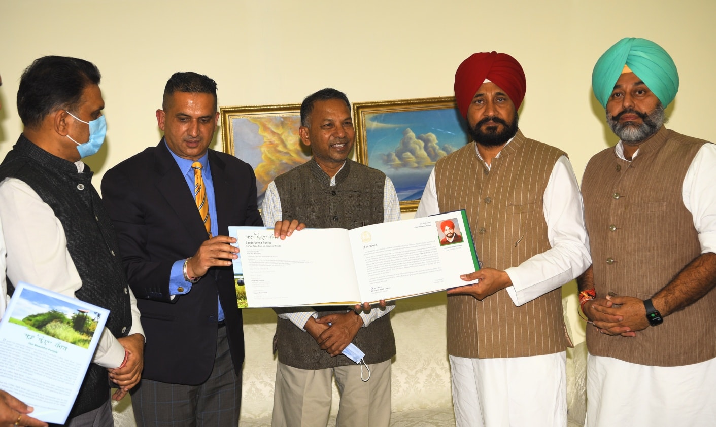 ਮੁੱਖ ਮੰਤਰੀ ਸ. ਚਰਨਜੀਤ ਸਿੰਘ ਚੰਨੀ ਨੇ ਐਡਵੋਕੇਟ ਅਤੇ ਕੁਦਰਤ ਪ੍ਰੇਮੀ ਹਰਪ੍ਰੀਤ ਸੰਧੂ ਵੱਲੋਂ ਲਿਖੀ ਸੂਬੇ ਭਰ ਦੇ ਮਨਮੋਹਕ ਕੁਦਰਤੀ ਸਥਾਨਾਂ ਨੂੰ ਦਰਸਾਉਂਦੀ ਕੌਫੀ ਟੇਬਲ ਬੁੱਕ ‘ਸਾਡਾ ਸੋਹਣਾ ਪੰਜਾਬ’ ਰਿਲੀਜ਼ ਕੀਤੀ।