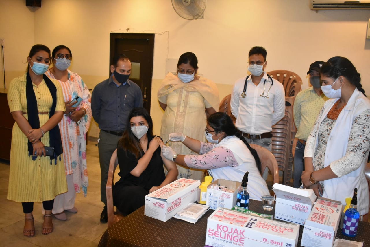 ਡਿਪਟੀ ਕਮਿਸ਼ਨਰ ਅਪਨੀਤ ਰਿਆਤ ਨੇ ਅੱਜ ਸਵੇਰੇ 8 ਵਜੇ ਸਰਵਿਸੇਜ਼ ਕਲੱਬ ਹੁਸ਼ਿਆਰਪੁਰ ਵਿਖੇ ਕੋਵਿਸ਼ਿਲਡ ਦੀ ਦੂਜੀ ਡੋਜ਼ ਲਗਵਾ ਕੇ ਜ਼ਿਲ੍ਹੇ ਵਿਚ ਮੈਗਾ ਕੈਂਪਾ ਦੀ ਸ਼ੁਰੂਆਤ ਕਰਵਾਈ। ਇਸ ਦੌਰਾਨ ਉਨ੍ਹਾਂ ਨਾਲ ਜ਼ਿਲ੍ਹਾ ਟੀਕਾਕਰਣ ਅਫ਼ਸਰ ਡਾ. ਸੀਮਾ ਗਰਗ ਵੀ ਮੌਜੂਦ ਸਨ।