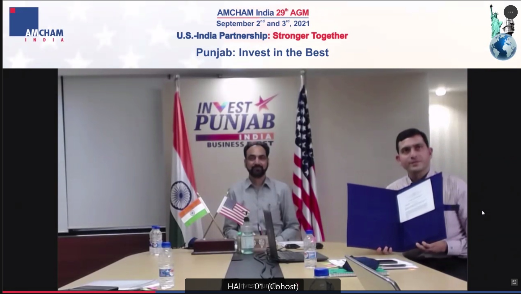 ਪੰਜਾਬ ਅਤੇ ਅਮੈਰਿਕਨ ਚੈਂਬਰ ਆਫ ਕਾਮਰਸ ਇਨ ਇੰਡੀਆ (ਐਮਚੈਮ ਇੰਡੀਆ) ਦਰਮਿਆਨ ਐਮਚੈਮ ਇੰਡੀਆ ਦੀ 29ਵੀਂ ਏਜੀਐਮ ਦੌਰਾਨ ਇਕ ਐਮ.ਓ.ਯੂ. (ਸਹਿਮਤੀ ਪੱਤਰ ) ਸਹੀਬੱਧ ਕੀਤਾ ਗਿਆ, ਜੋ ਅਮਰੀਕਾ ਦੀਆਂ ਮੈਂਬਰ ਕੰਪਨੀਆਂ ਨੂੰ ਸੂਬੇ ਵਿੱਚ ਨਿਵੇਸ਼ ਅਤੇ ਵਪਾਰ ਲਈ ਉਤਸ਼ਾਹਿਤ ਕਰਨ ਦੇ ਨਾਲ ਨਾਲ ਸਾਜ਼ਗਾਰ ਮਾਹੌਲ ਮੁਹੱਈਆ ਕਰਵਾਏਗਾ। ਇਸ ਸਹਿਮਤੀ ਪੱਤਰ ‘ਤੇ ਇਨਵੈਸਟ ਪੰਜਾਬ ਦੇ ਸੀ.ਈ.ਓ. ਸ੍ਰੀ ਰਜਤ ਅਗਰਵਾਲ ਵਲੋਂ ਹਸਤਾਖਰ ਕੀਤੇ ਗਏ।