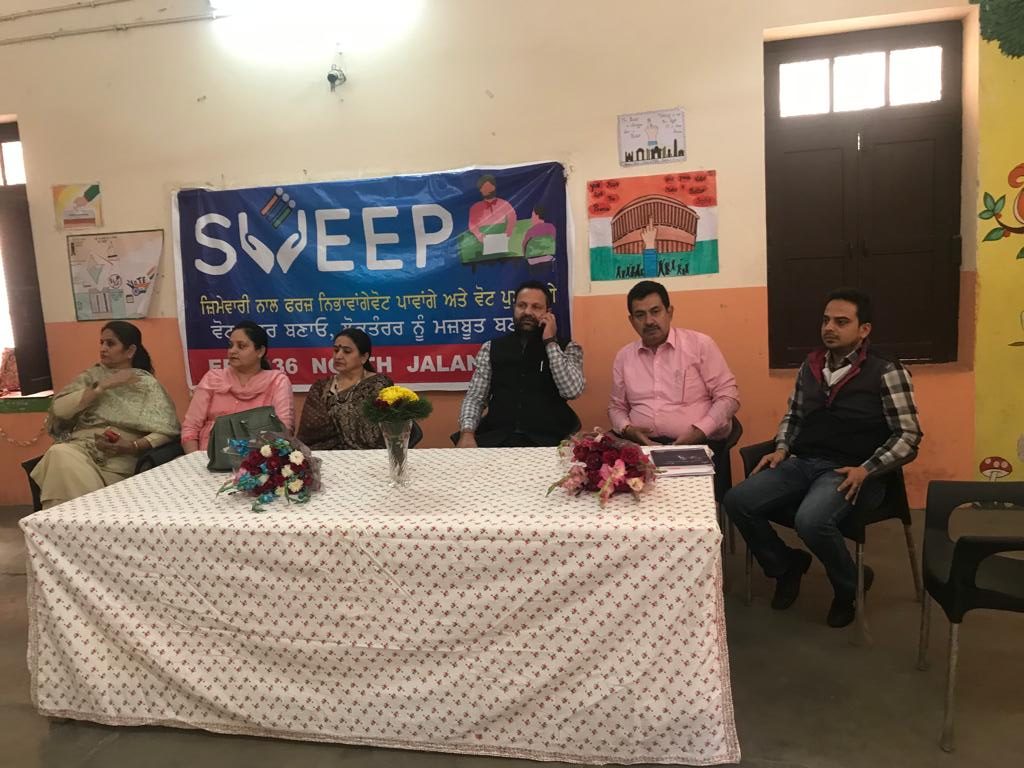 ਜਲੰਧਰ 11 ਨਵੰਬਰ (ਨਿਊਜ਼ ਹੰਟ)- ਨੌਜਵਾਨ ਨੂੰ ਭਾਰਤੀ ਲੋਕਤੰਤਰ ਪ੍ਰਣਾਲੀ ਦਾ ਹਿੱਸਾ ਬਣਾਉਣ ਦੇ ਮਨੋਰਥ ਤਹਿਤ ਡਿਪਟੀ ਕਮਿਸ਼ਨਰ ਜਲੰਧਰ ਸ੍ਰੀ ਘਨਸ਼ਿਆਮ ਥੋਰੀ ਦੀ ਯੋਗ ਰਹਿਨੁਮਾਈ ਹੇਠ ਜ਼ਿਲ੍ਹੇ ਵਿੱਚ ਸਵੀਪ ਪ੍ਰੋਗਰਾਮ ਤਹਿਤ ਵੱਖ-ਵੱਖ ਗਤੀਵਿਧੀਆਂ ਕਰਵਾਈਆਂ ਜਾ ਰਹੀਆਂ ਹਨ ਅਤੇ ਇਸੇ ਕੜੀ ਤਹਿਤ ਵਧੀਕ ਮੁੱਖ ਪ੍ਰਸ਼ਾਸਕ ਪੁੱਡਾ-ਕਮ-ਈ.ਆਰ.ਓ. ਵਿਧਾਨਸਭਾ ਹਲਕਾ ਜਲੰਧਰ ਉਤੱਰੀ ਸ੍ਰੀ ਰਾਜੀਵ ਵਰਮਾ ਦੀ ਪ੍ਰਧਾਨਗੀ ਹੇਠ ਸ੍ਰੀ ਦੇਵੀ ਸਹਾਏ ਐਸ.ਡੀ.ਕੰਨਿਆ ਸੀਨੀਅਰ ਸੈਕੰਡਰੀ ਸਕੂਲ ਵਿਖੇ ਨੌਜਵਾਨ ਯੋਗ ਵਿਦਿਆਰਥੀਆਂ ਨੂੰ ਵੋਟ ਬਣਾਉਣ ਲਈ ਪ੍ਰੇਰਿਤ ਕਰਨ ਸਬੰਧੀ ਜਾਗਰੂਕਤਾ ਸੈਮੀਨਾਰ ਕਰਵਾਇਆ ਗਿਆ।