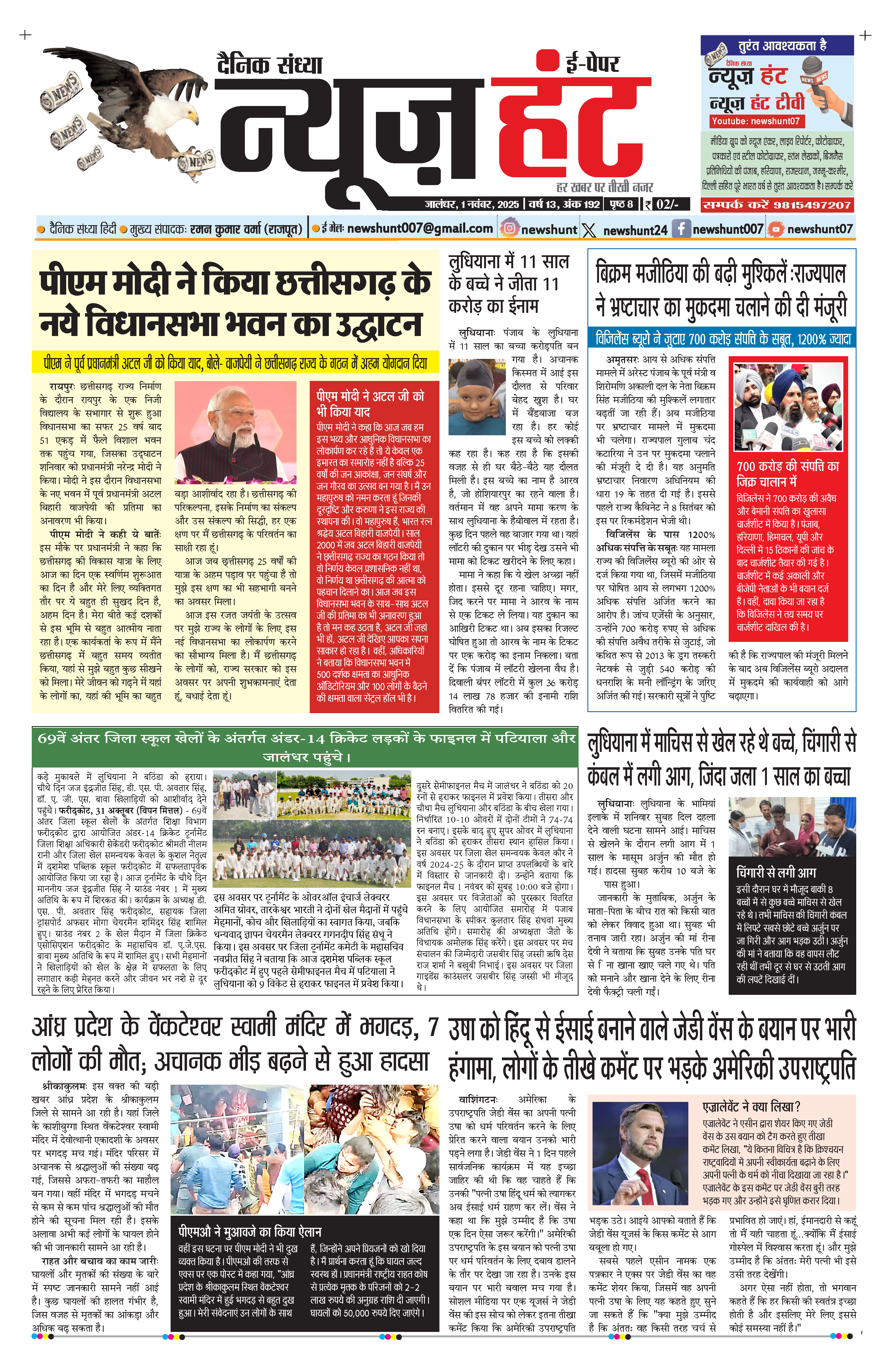 HomeE-Paper E-Paper News Hunt Daily Evening E-Paper 01-11-2025 Page 1 By newshunt November 1, 2025 0 33 FacebookTwitterPinterestWhatsAppTelegramCopy URL Share FacebookTwitterPinterestWhatsAppTelegramCopy URL Previous articleNews Hunt Daily Evening E-Paper 01-11-2025 Page 2Next articleNews Hunt Daily Evening E-Paper 02-11-2025 Page 8 newshunthttp://newshunt.info Related Articles E-Paper News Hunt Daily Evening E-paper 24-01-2026 Page 1 E-Paper News Hunt Daily Evening E-paper 24-01-2026 Page 2 E-Paper News Hunt Daily Evening E-paper 24-01-2026 Page 3 LEAVE A REPLY Cancel reply Comment: Please enter your comment! Name:* Please enter your name here Email:* You have entered an incorrect email address! Please enter your email address here Website: Save my name, email, and website in this browser for the next time I comment. Stay Connected0FansLike3,912FollowersFollow22,800SubscribersSubscribe - Advertisement - Latest Articles E-Paper News Hunt Daily Evening E-paper 24-01-2026 Page 1 E-Paper News Hunt Daily Evening E-paper 24-01-2026 Page 2 E-Paper News Hunt Daily Evening E-paper 24-01-2026 Page 3 E-Paper News Hunt Daily Evening E-paper 24-01-2026 Page 4 E-Paper News Hunt Daily Evening E-paper 24-01-2026 Page 5 Load more