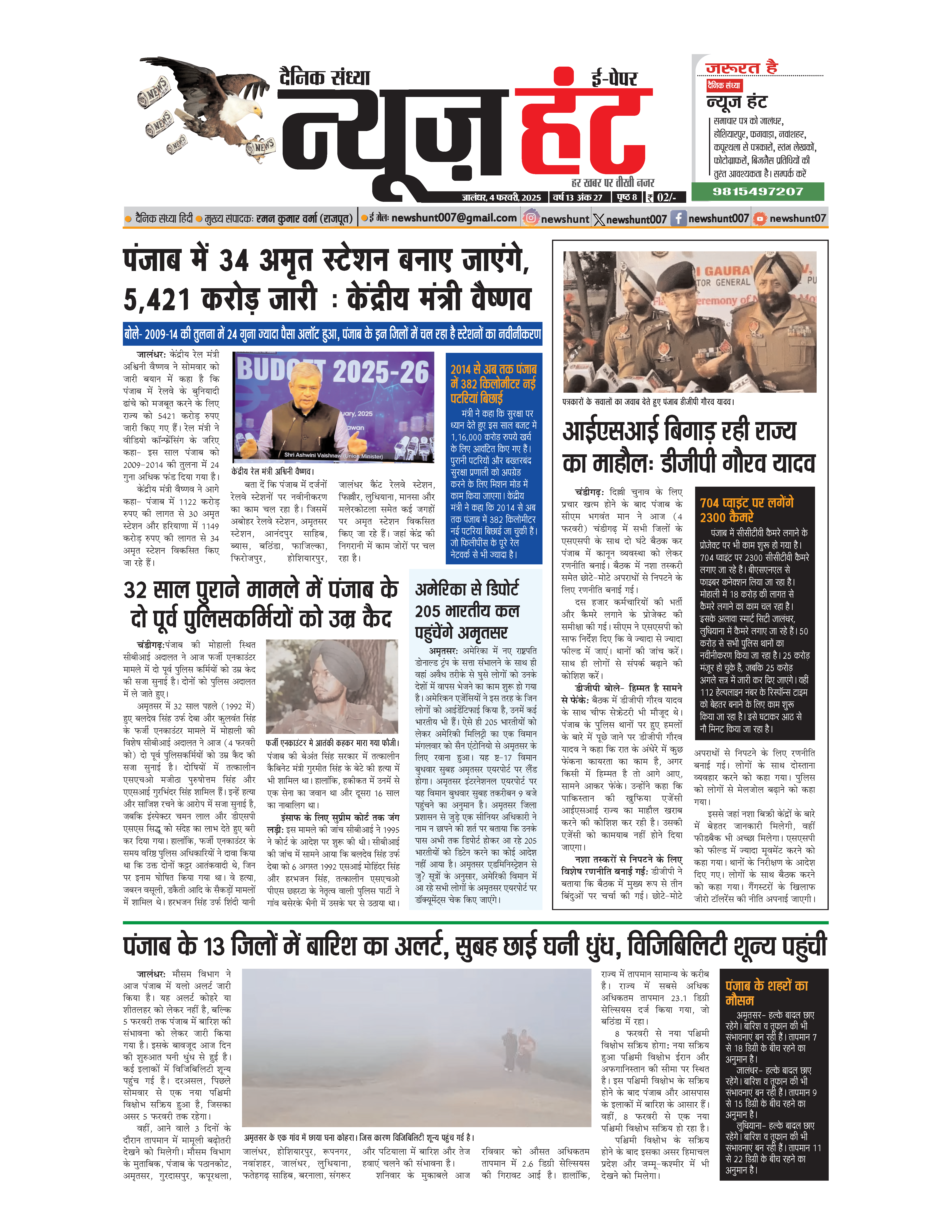 HomeE-Paper E-Paper News Hunt Daily Evening E-Paper 04-02-2025 Page 1 By newshunt February 4, 2025 0 64 FacebookTwitterPinterestWhatsAppTelegramCopy URL Tags#breakingnews#epaper#news#newshuntlatest newslatestnewsNews Hunt Share FacebookTwitterPinterestWhatsAppTelegramCopy URL Previous articleNews Hunt Daily Evening E-Paper 04-02-2025 Page 2Next articleNews Hunt Daily Evening E-Paper 05-02-2025 Page 8 newshunthttp://newshunt.info Related Articles E-Paper News Hunt Daily Evening E-paper 15-02-2026 Page 1 E-Paper News Hunt Daily Evening E-paper 15-02-2026 Page 2 E-Paper News Hunt Daily Evening E-paper 15-02-2026 Page 3 LEAVE A REPLY Cancel reply Comment: Please enter your comment! Name:* Please enter your name here Email:* You have entered an incorrect email address! Please enter your email address here Website: Save my name, email, and website in this browser for the next time I comment. Stay Connected0FansLike3,912FollowersFollow22,800SubscribersSubscribe - Advertisement - Latest Articles E-Paper News Hunt Daily Evening E-paper 15-02-2026 Page 1 E-Paper News Hunt Daily Evening E-paper 15-02-2026 Page 2 E-Paper News Hunt Daily Evening E-paper 15-02-2026 Page 3 E-Paper News Hunt Daily Evening E-paper 15-02-2026 Page 4 E-Paper News Hunt Daily Evening E-paper 15-02-2026 Page 5 Load more