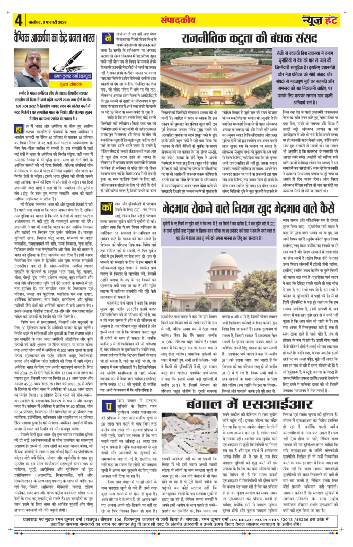 HomeE-Paper E-Paper News Hunt Daily Evening E-Paper 09-02-2026 Page 4 By newshunt February 9, 2026 0 5 FacebookTwitterPinterestWhatsAppTelegramCopy URL Share FacebookTwitterPinterestWhatsAppTelegramCopy URL Previous articleNews Hunt Daily Evening E-Paper 09-02-2026 Page 5Next articleNews Hunt Daily Evening E-Paper 09-02-2026 Page 3 newshunthttp://newshunt.info Related Articles E-Paper News Hunt Daily Evening E-Paper 09-02-2026 Page 1 E-Paper News Hunt Daily Evening E-Paper 09-02-2026 Page 2 E-Paper News Hunt Daily Evening E-Paper 09-02-2026 Page 3 LEAVE A REPLY Cancel reply Comment: Please enter your comment! Name:* Please enter your name here Email:* You have entered an incorrect email address! Please enter your email address here Website: Save my name, email, and website in this browser for the next time I comment. Stay Connected0FansLike3,912FollowersFollow22,800SubscribersSubscribe - Advertisement - Latest Articles E-Paper News Hunt Daily Evening E-Paper 09-02-2026 Page 1 E-Paper News Hunt Daily Evening E-Paper 09-02-2026 Page 2 E-Paper News Hunt Daily Evening E-Paper 09-02-2026 Page 3 E-Paper News Hunt Daily Evening E-Paper 09-02-2026 Page 5 E-Paper News Hunt Daily Evening E-Paper 09-02-2026 Page 6 Load more
