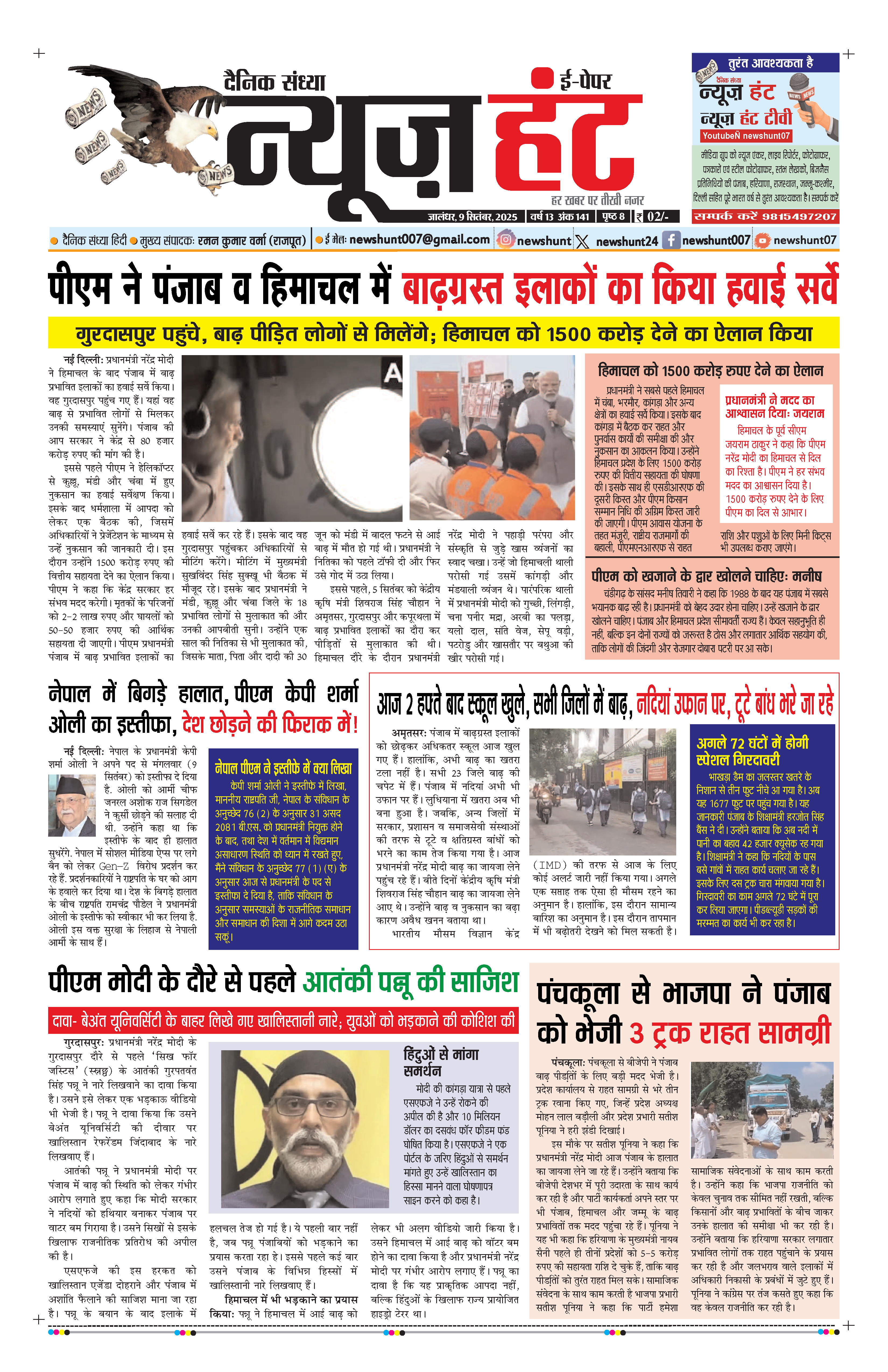HomeE-Paper E-Paper News Hunt Daily Evening E-Paper 09-09-2025 Page 1 By newshunt September 9, 2025 0 30 FacebookTwitterPinterestWhatsAppTelegramCopy URL Share FacebookTwitterPinterestWhatsAppTelegramCopy URL Previous articleNews Hunt Daily Evening E-Paper 09-09-2025 Page 2Next articleNews Hunt Daily Evening E-Paper 10-09-2025 Page 8 newshunthttp://newshunt.info Related Articles E-Paper News Hunt Daily Evening E-paper 24-02-2026 Page 1 E-Paper News Hunt Daily Evening E-paper 24-02-2026 Page 2 E-Paper News Hunt Daily Evening E-paper 24-02-2026 Page 3 LEAVE A REPLY Cancel reply Comment: Please enter your comment! Name:* Please enter your name here Email:* You have entered an incorrect email address! Please enter your email address here Website: Save my name, email, and website in this browser for the next time I comment. Stay Connected0FansLike3,912FollowersFollow22,800SubscribersSubscribe - Advertisement - Latest Articles E-Paper News Hunt Daily Evening E-paper 24-02-2026 Page 1 E-Paper News Hunt Daily Evening E-paper 24-02-2026 Page 2 E-Paper News Hunt Daily Evening E-paper 24-02-2026 Page 3 E-Paper News Hunt Daily Evening E-paper 24-02-2026 Page 4 E-Paper News Hunt Daily Evening E-paper 24-02-2026 Page 5 Load more