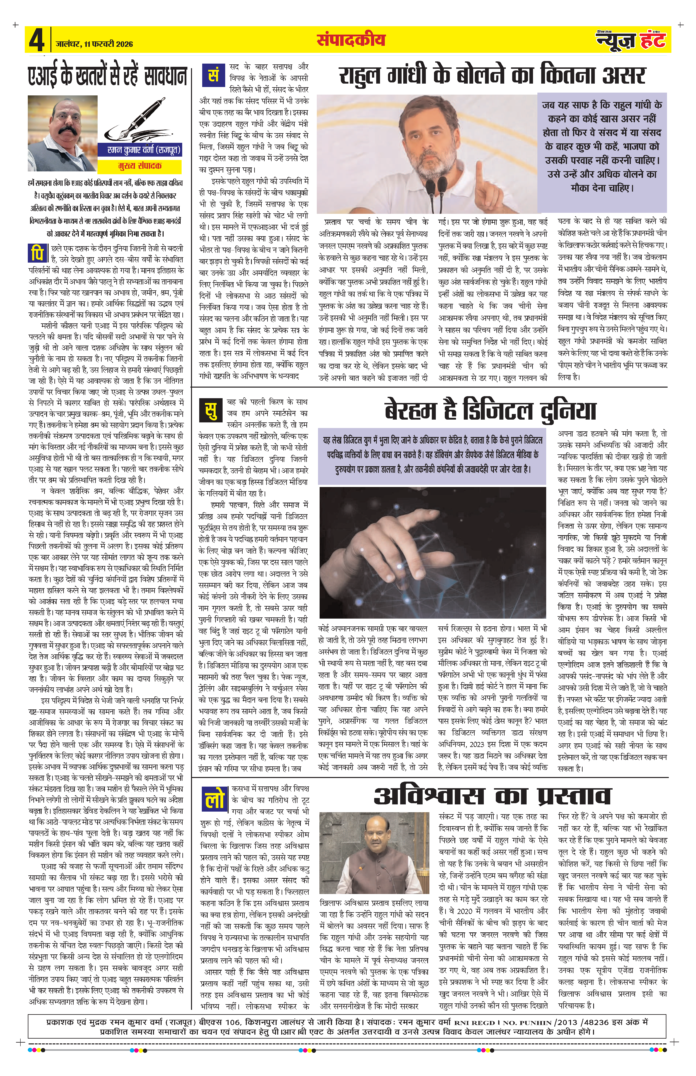 HomeE-Paper E-Paper News Hunt Daily Evening E-paper 11-02-2026 Page 4 By newshunt February 11, 2026 0 4 FacebookTwitterPinterestWhatsAppTelegramCopy URL Tags#newshuntlatestnewsNews Hunt Share FacebookTwitterPinterestWhatsAppTelegramCopy URL Previous articleNews Hunt Daily Evening E-paper 11-02-2026 Page 5Next articleNews Hunt Daily Evening E-paper 11-02-2026 Page 3 newshunthttp://newshunt.info Related Articles E-Paper News Hunt Daily Evening E-paper 11-02-2026 Page 1 E-Paper News Hunt Daily Evening E-paper 11-02-2026 Page 2 E-Paper News Hunt Daily Evening E-paper 11-02-2026 Page 3 LEAVE A REPLY Cancel reply Comment: Please enter your comment! Name:* Please enter your name here Email:* You have entered an incorrect email address! Please enter your email address here Website: Save my name, email, and website in this browser for the next time I comment. Stay Connected0FansLike3,912FollowersFollow22,800SubscribersSubscribe - Advertisement - Latest Articles E-Paper News Hunt Daily Evening E-paper 11-02-2026 Page 1 E-Paper News Hunt Daily Evening E-paper 11-02-2026 Page 2 E-Paper News Hunt Daily Evening E-paper 11-02-2026 Page 3 E-Paper News Hunt Daily Evening E-paper 11-02-2026 Page 5 E-Paper News Hunt Daily Evening E-paper 11-02-2026 Page 6 Load more