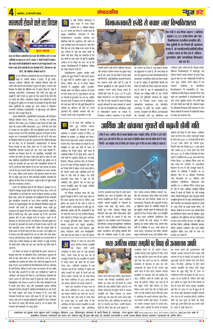 HomeE-Paper E-Paper News Hunt Daily Evening E-paper 12-02-2026 Page 4 By newshunt February 12, 2026 0 5 FacebookTwitterPinterestWhatsAppTelegramCopy URL Share FacebookTwitterPinterestWhatsAppTelegramCopy URL Previous articleNews Hunt Daily Evening E-paper 12-02-2026 Page 5Next articleNews Hunt Daily Evening E-paper 12-02-2026 Page 3 newshunthttp://newshunt.info Related Articles E-Paper News Hunt Daily Evening E-paper 12-02-2026 Page 1 E-Paper News Hunt Daily Evening E-paper 12-02-2026 Page 2 E-Paper News Hunt Daily Evening E-paper 12-02-2026 Page 3 LEAVE A REPLY Cancel reply Comment: Please enter your comment! Name:* Please enter your name here Email:* You have entered an incorrect email address! Please enter your email address here Website: Save my name, email, and website in this browser for the next time I comment. Stay Connected0FansLike3,912FollowersFollow22,800SubscribersSubscribe - Advertisement - Latest Articles E-Paper News Hunt Daily Evening E-paper 12-02-2026 Page 1 E-Paper News Hunt Daily Evening E-paper 12-02-2026 Page 2 E-Paper News Hunt Daily Evening E-paper 12-02-2026 Page 3 E-Paper News Hunt Daily Evening E-paper 12-02-2026 Page 5 E-Paper News Hunt Daily Evening E-paper 12-02-2026 Page 6 Load more
