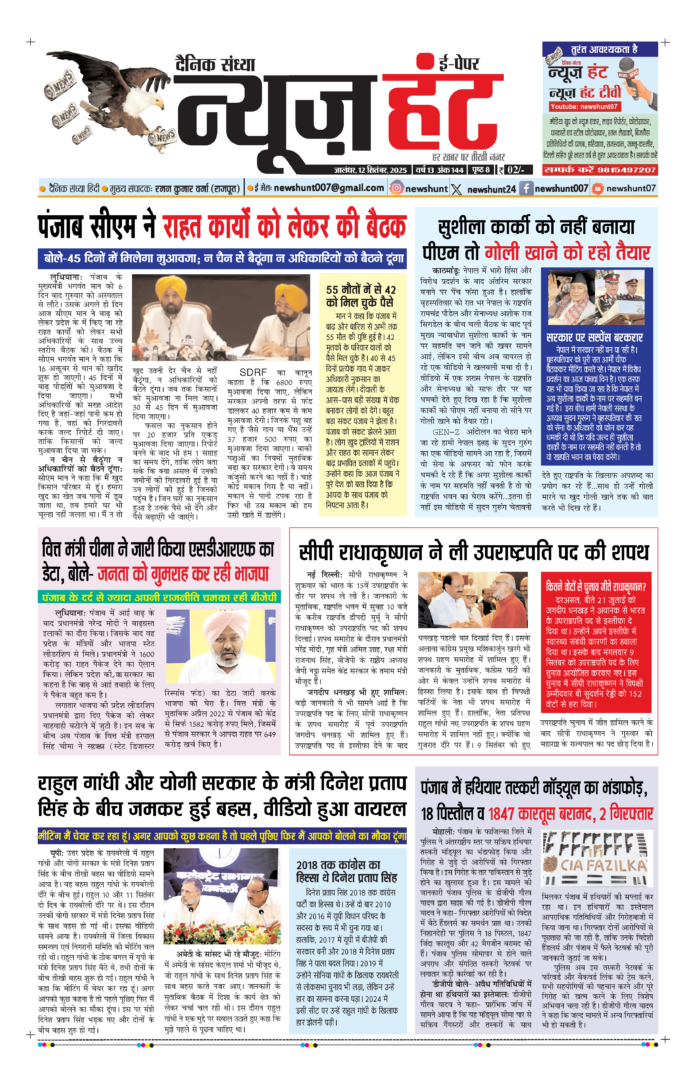 HomeE-Paper E-Paper News Hunt Daily Evening E-Paper 12-09-2025 Page 1 By newshunt September 12, 2025 0 34 FacebookTwitterPinterestWhatsAppTelegramCopy URL Share FacebookTwitterPinterestWhatsAppTelegramCopy URL Previous articleNews Hunt Daily Evening E-Paper 12-09-2025 Page 2Next articleNews Hunt Daily Evening E-Paper 13-09-2025 Page 8 newshunthttp://newshunt.info Related Articles E-Paper News Hunt Daily Evening E-paper 12-02-2026 Page 1 E-Paper News Hunt Daily Evening E-paper 12-02-2026 Page 2 E-Paper News Hunt Daily Evening E-paper 12-02-2026 Page 3 LEAVE A REPLY Cancel reply Comment: Please enter your comment! Name:* Please enter your name here Email:* You have entered an incorrect email address! Please enter your email address here Website: Save my name, email, and website in this browser for the next time I comment. Stay Connected0FansLike3,912FollowersFollow22,800SubscribersSubscribe - Advertisement - Latest Articles E-Paper News Hunt Daily Evening E-paper 12-02-2026 Page 1 E-Paper News Hunt Daily Evening E-paper 12-02-2026 Page 2 E-Paper News Hunt Daily Evening E-paper 12-02-2026 Page 3 E-Paper News Hunt Daily Evening E-paper 12-02-2026 Page 4 E-Paper News Hunt Daily Evening E-paper 12-02-2026 Page 5 Load more