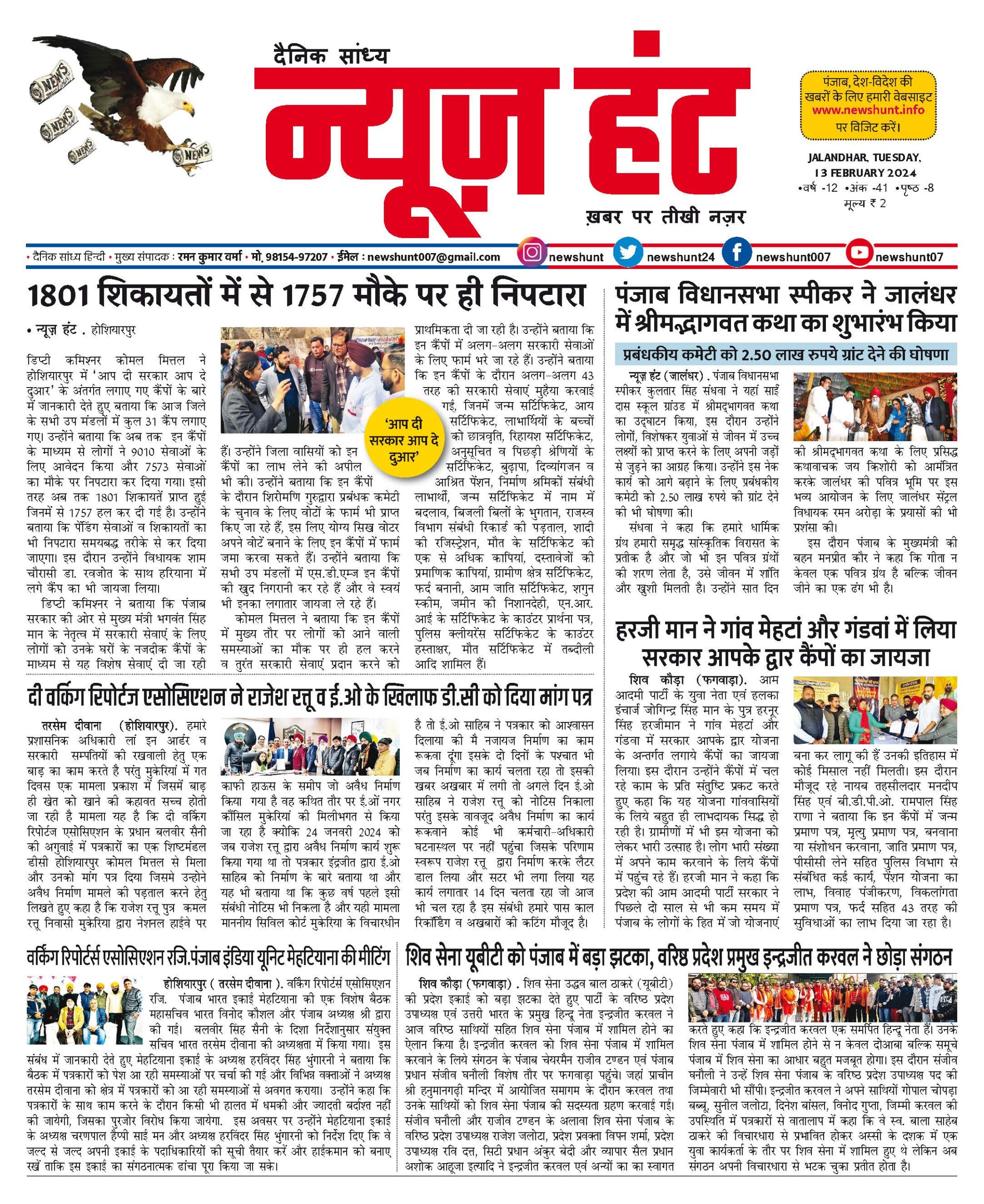 HomeE-Paper E-Paper News Hunt Daily Evening E-Paper By newshunt February 16, 2024 0 148 FacebookTwitterPinterestWhatsAppTelegramCopy URL 13 February 2024 Page 1 #NEWS #breakingnews #latestnews #punjabnews #newdelhi #indianews #epaper #Newshunt #latestnews #LatestUpdates #latestupdates #indianewstodaylive #hoshiarpur #jalandhar #jammu Tags#breakingnews#epaper#news#newshuntlatest newslatestnewsNews Huntpunjablatestnews Share FacebookTwitterPinterestWhatsAppTelegramCopy URL Previous articleNews Hunt Daily Evening E-PaperNext articleNews Hunt Daily Evening E-Paper newshunthttp://newshunt.info Related Articles E-Paper News Hunt Daily Evening E-paper 13-12-2025 Page 1 E-Paper News Hunt Daily Evening E-paper 13-12-2025 Page 2 E-Paper News Hunt Daily Evening E-paper 13-12-2025 Page 3 LEAVE A REPLY Cancel reply Comment: Please enter your comment! Name:* Please enter your name here Email:* You have entered an incorrect email address! Please enter your email address here Website: Save my name, email, and website in this browser for the next time I comment. Stay Connected0FansLike3,912FollowersFollow22,800SubscribersSubscribe - Advertisement - Latest Articles E-Paper News Hunt Daily Evening E-paper 13-12-2025 Page 1 E-Paper News Hunt Daily Evening E-paper 13-12-2025 Page 2 E-Paper News Hunt Daily Evening E-paper 13-12-2025 Page 3 E-Paper News Hunt Daily Evening E-paper 13-12-2025 Page 4 E-Paper News Hunt Daily Evening E-paper 13-12-2025 Page 5 Load more