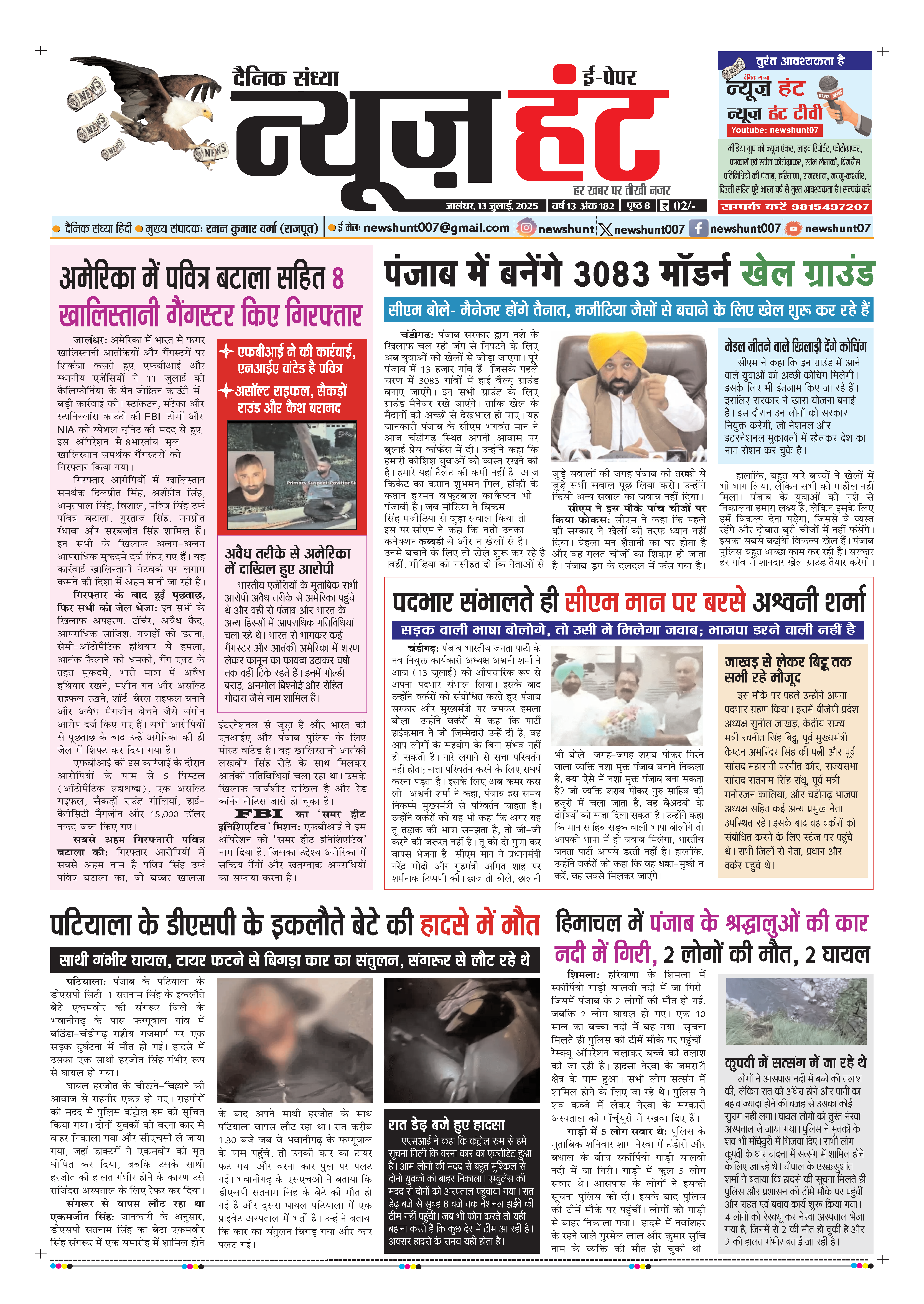 News Hunt Daily Evening E-Paper 13-07-2025 Page 1