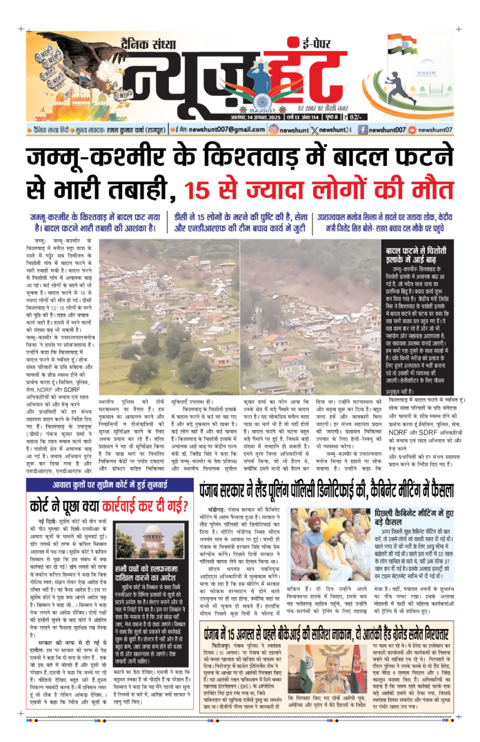 HomeE-Paper E-Paper News Hunt Daily Evening E-Paper 14-08-2025 Page 1 By newshunt August 14, 2025 0 38 FacebookTwitterPinterestWhatsAppTelegramCopy URL Tags#news#newshuntlatest newsNews Huntpunjablatestnews Share FacebookTwitterPinterestWhatsAppTelegramCopy URL Previous articleNews Hunt Daily Evening E-Paper 14-08-2025 Page 2Next articleNews Hunt Daily Evening E-Paper 16-08-2025 Page 8 newshunthttp://newshunt.info Related Articles E-Paper News Hunt Daily Evening E-paper 24-01-2026 Page 1 E-Paper News Hunt Daily Evening E-paper 24-01-2026 Page 2 E-Paper News Hunt Daily Evening E-paper 24-01-2026 Page 3 LEAVE A REPLY Cancel reply Comment: Please enter your comment! Name:* Please enter your name here Email:* You have entered an incorrect email address! Please enter your email address here Website: Save my name, email, and website in this browser for the next time I comment. Stay Connected0FansLike3,912FollowersFollow22,800SubscribersSubscribe - Advertisement - Latest Articles E-Paper News Hunt Daily Evening E-paper 24-01-2026 Page 1 E-Paper News Hunt Daily Evening E-paper 24-01-2026 Page 2 E-Paper News Hunt Daily Evening E-paper 24-01-2026 Page 3 E-Paper News Hunt Daily Evening E-paper 24-01-2026 Page 4 E-Paper News Hunt Daily Evening E-paper 24-01-2026 Page 5 Load more