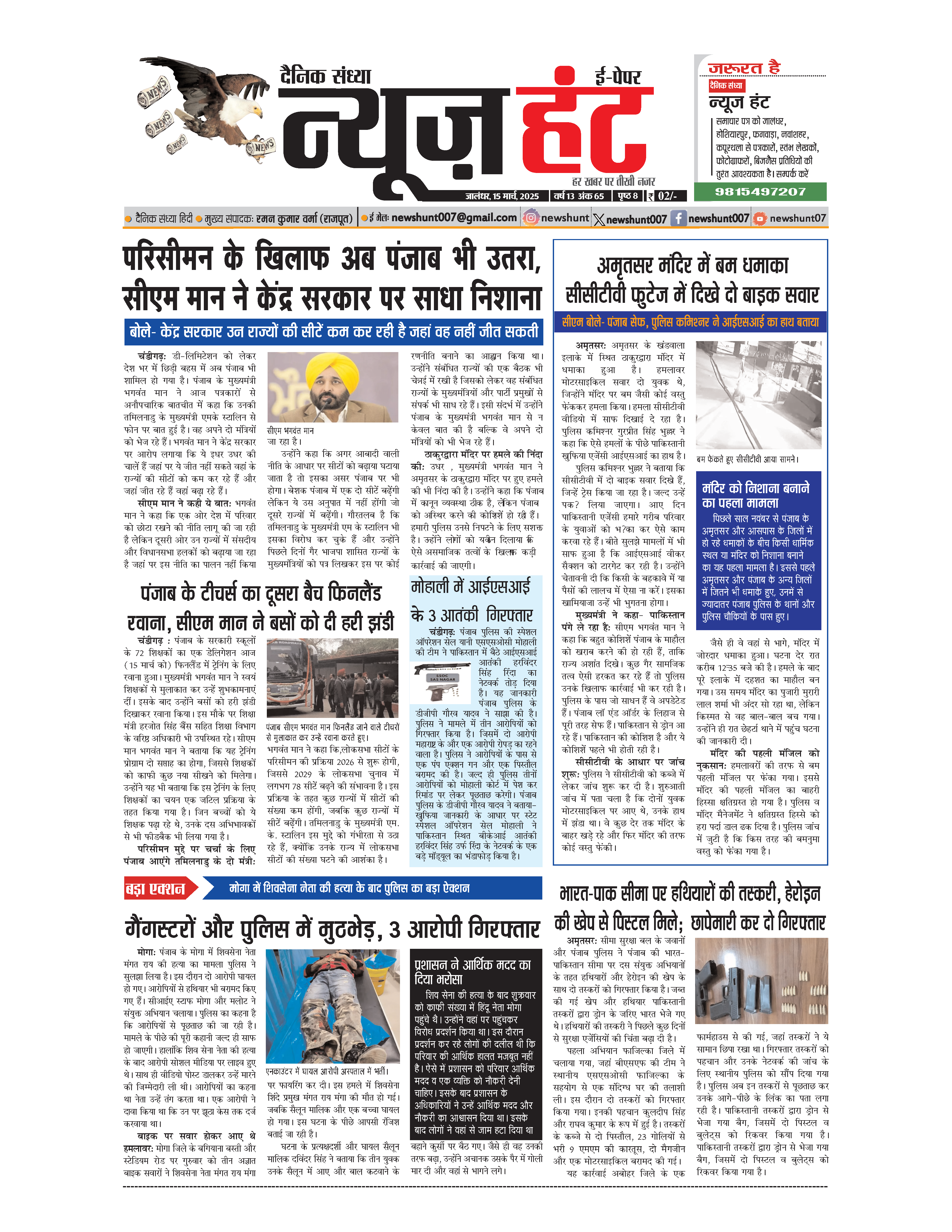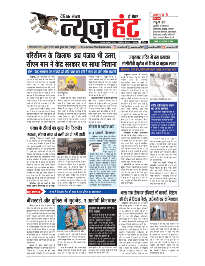HomeE-Paper E-Paper News Hunt Daily Evening E-Paper 15-03-2025 Page 1 By newshunt March 15, 2025 0 83 FacebookTwitterPinterestWhatsAppTelegramCopy URL Tags#breakingnews#newshuntlatest newsNews Huntpunjablatestnews Share FacebookTwitterPinterestWhatsAppTelegramCopy URL Previous articleNews Hunt Daily Evening E-Paper 15-03-2025 Page 2Next articleNews Hunt Daily Evening E-Paper 16-03-2025 Page 7 newshunthttp://newshunt.info Related Articles E-Paper News Hunt Daily Evening E-paper 24-02-2026 Page 1 E-Paper News Hunt Daily Evening E-paper 24-02-2026 Page 2 E-Paper News Hunt Daily Evening E-paper 24-02-2026 Page 3 LEAVE A REPLY Cancel reply Comment: Please enter your comment! Name:* Please enter your name here Email:* You have entered an incorrect email address! Please enter your email address here Website: Save my name, email, and website in this browser for the next time I comment. Stay Connected0FansLike3,912FollowersFollow22,800SubscribersSubscribe - Advertisement - Latest Articles E-Paper News Hunt Daily Evening E-paper 24-02-2026 Page 1 E-Paper News Hunt Daily Evening E-paper 24-02-2026 Page 2 E-Paper News Hunt Daily Evening E-paper 24-02-2026 Page 3 E-Paper News Hunt Daily Evening E-paper 24-02-2026 Page 4 E-Paper News Hunt Daily Evening E-paper 24-02-2026 Page 5 Load more