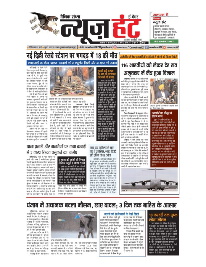 HomeE-Paper E-Paper News Hunt Daily Evening E-Paper 16-02-2025 Page 1 By newshunt February 16, 2025 0 67 FacebookTwitterPinterestWhatsAppTelegramCopy URL Tags#breakingnews#epaper#news#newshuntlatest newsNews Huntpunjablatestnews Share FacebookTwitterPinterestWhatsAppTelegramCopy URL Previous articleNews Hunt Daily Evening E-Paper 16-02-2025 Page 2Next articleNews Hunt Daily Evening E-Paper 17-02-2025 Page 8 newshunthttp://newshunt.info Related Articles E-Paper News Hunt Daily Evening E-paper 15-02-2026 Page 1 E-Paper News Hunt Daily Evening E-paper 15-02-2026 Page 2 E-Paper News Hunt Daily Evening E-paper 15-02-2026 Page 3 LEAVE A REPLY Cancel reply Comment: Please enter your comment! Name:* Please enter your name here Email:* You have entered an incorrect email address! Please enter your email address here Website: Save my name, email, and website in this browser for the next time I comment. Stay Connected0FansLike3,912FollowersFollow22,800SubscribersSubscribe - Advertisement - Latest Articles E-Paper News Hunt Daily Evening E-paper 15-02-2026 Page 1 E-Paper News Hunt Daily Evening E-paper 15-02-2026 Page 2 E-Paper News Hunt Daily Evening E-paper 15-02-2026 Page 3 E-Paper News Hunt Daily Evening E-paper 15-02-2026 Page 4 E-Paper News Hunt Daily Evening E-paper 15-02-2026 Page 5 Load more