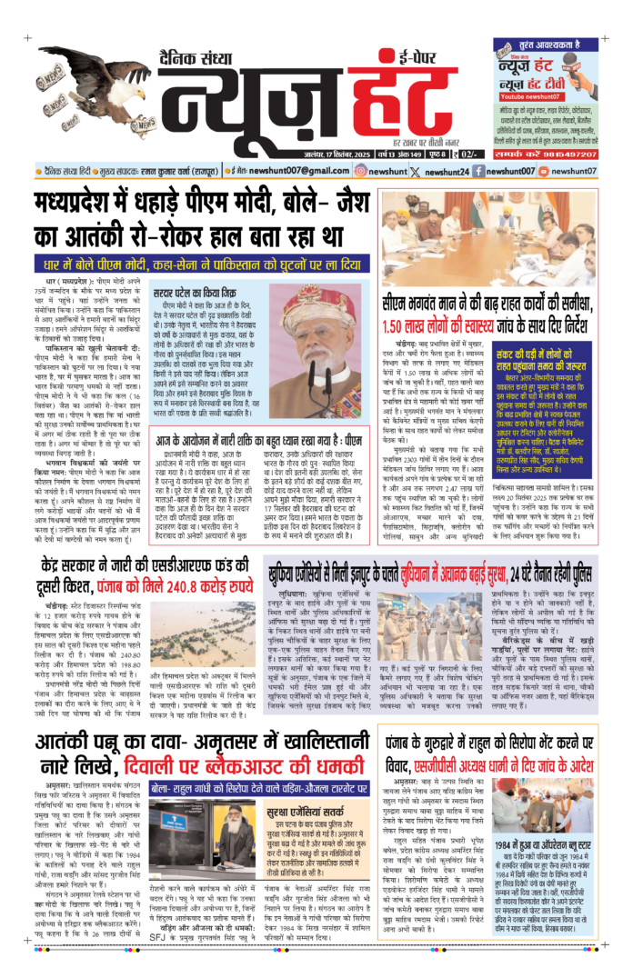 HomeE-Paper E-Paper News Hunt Daily Evening E-Paper 17-09-2025 Page 1 By newshunt September 17, 2025 0 20 FacebookTwitterPinterestWhatsAppTelegramCopy URL Share FacebookTwitterPinterestWhatsAppTelegramCopy URL Previous articleNews Hunt Daily Evening E-Paper 17-09-2025 Page 2Next articleNews Hunt Daily Evening E-Paper 18-09-2025 Page 8 newshunthttp://newshunt.info Related Articles E-Paper News Hunt Daily Evening Newspaper 14-12-2025 Page 1 E-Paper News Hunt Daily Evening Newspaper 14-12-2025 Page 2 E-Paper News Hunt Daily Evening Newspaper 14-12-2025 Page 3 LEAVE A REPLY Cancel reply Comment: Please enter your comment! Name:* Please enter your name here Email:* You have entered an incorrect email address! Please enter your email address here Website: Save my name, email, and website in this browser for the next time I comment. Stay Connected0FansLike3,912FollowersFollow22,800SubscribersSubscribe - Advertisement - Latest Articles E-Paper News Hunt Daily Evening Newspaper 14-12-2025 Page 1 E-Paper News Hunt Daily Evening Newspaper 14-12-2025 Page 2 E-Paper News Hunt Daily Evening Newspaper 14-12-2025 Page 3 E-Paper News Hunt Daily Evening Newspaper 14-12-2025 Page 4 E-Paper News Hunt Daily Evening Newspaper 14-12-2025 Page 5 Load more
