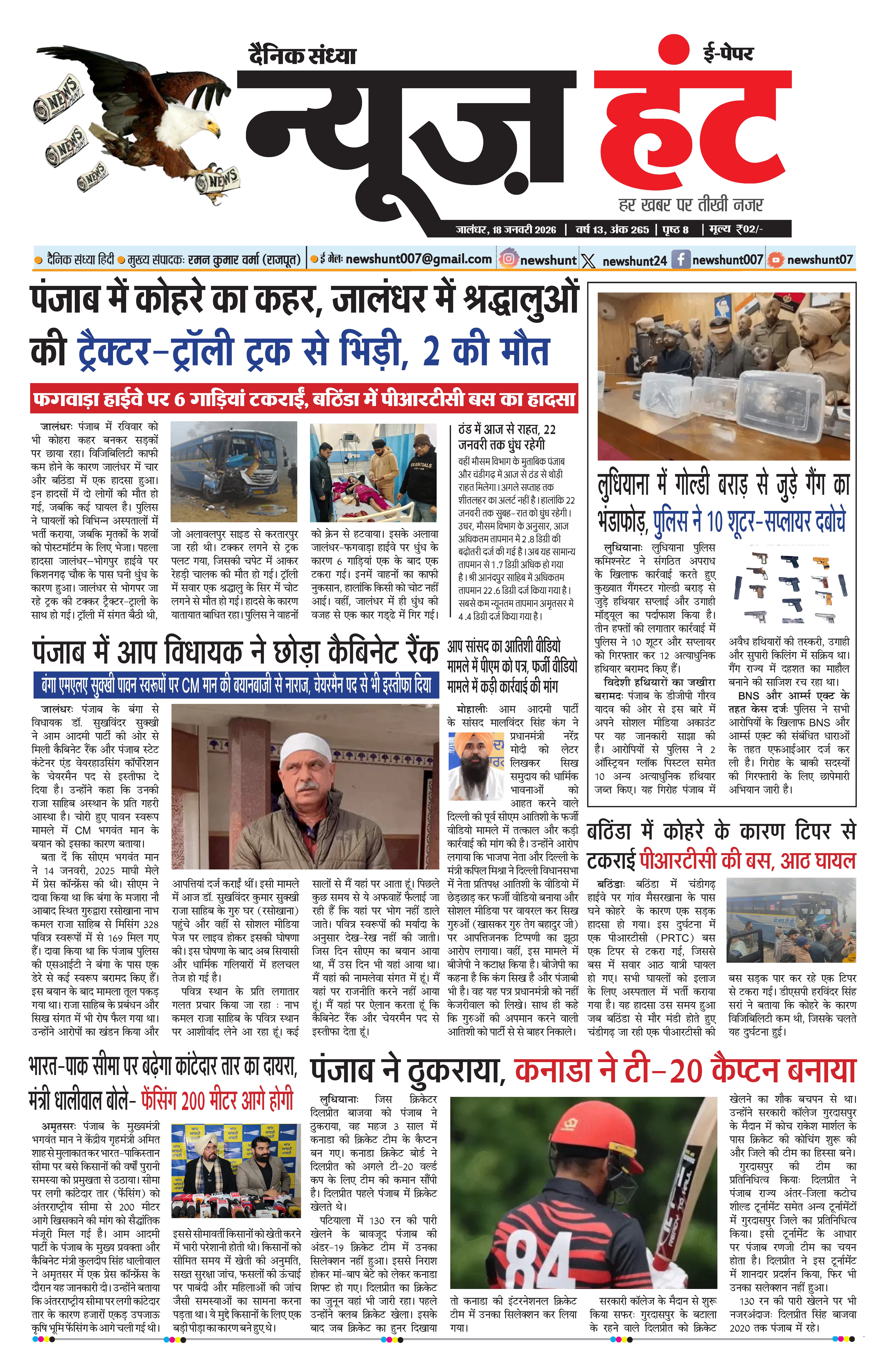 HomeE-Paper E-Paper News Hunt Daily Evening E-paper 18-01-2026 Page 1 By newshunt January 18, 2026 0 5 FacebookTwitterPinterestWhatsAppTelegramCopy URL Share FacebookTwitterPinterestWhatsAppTelegramCopy URL Previous articleNews Hunt Daily Evening E-paper 18-01-2026 Page 2Next articleNews Hunt Daily Evening E-paper 19-01-2026 Page 8 newshunthttp://newshunt.info Related Articles E-Paper News Hunt Daily Evening E-paper 21-01-2026 Page 1 E-Paper News Hunt Daily Evening E-paper 21-01-2026 Page 2 E-Paper News Hunt Daily Evening E-paper 21-01-2026 Page 3 LEAVE A REPLY Cancel reply Comment: Please enter your comment! Name:* Please enter your name here Email:* You have entered an incorrect email address! Please enter your email address here Website: Save my name, email, and website in this browser for the next time I comment. Stay Connected0FansLike3,912FollowersFollow22,800SubscribersSubscribe - Advertisement - Latest Articles E-Paper News Hunt Daily Evening E-paper 21-01-2026 Page 1 E-Paper News Hunt Daily Evening E-paper 21-01-2026 Page 2 E-Paper News Hunt Daily Evening E-paper 21-01-2026 Page 3 E-Paper News Hunt Daily Evening E-paper 21-01-2026 Page 4 E-Paper News Hunt Daily Evening E-paper 21-01-2026 Page 5 Load more