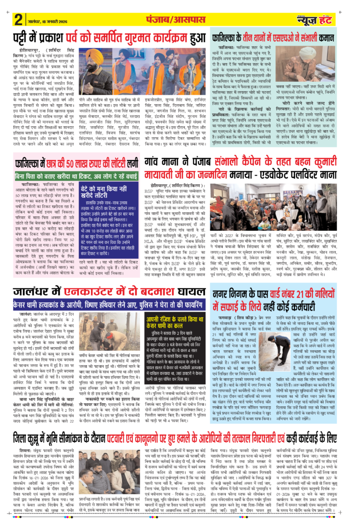 News Hunt Daily Evening E-paper 18-01-2026 Page 2
