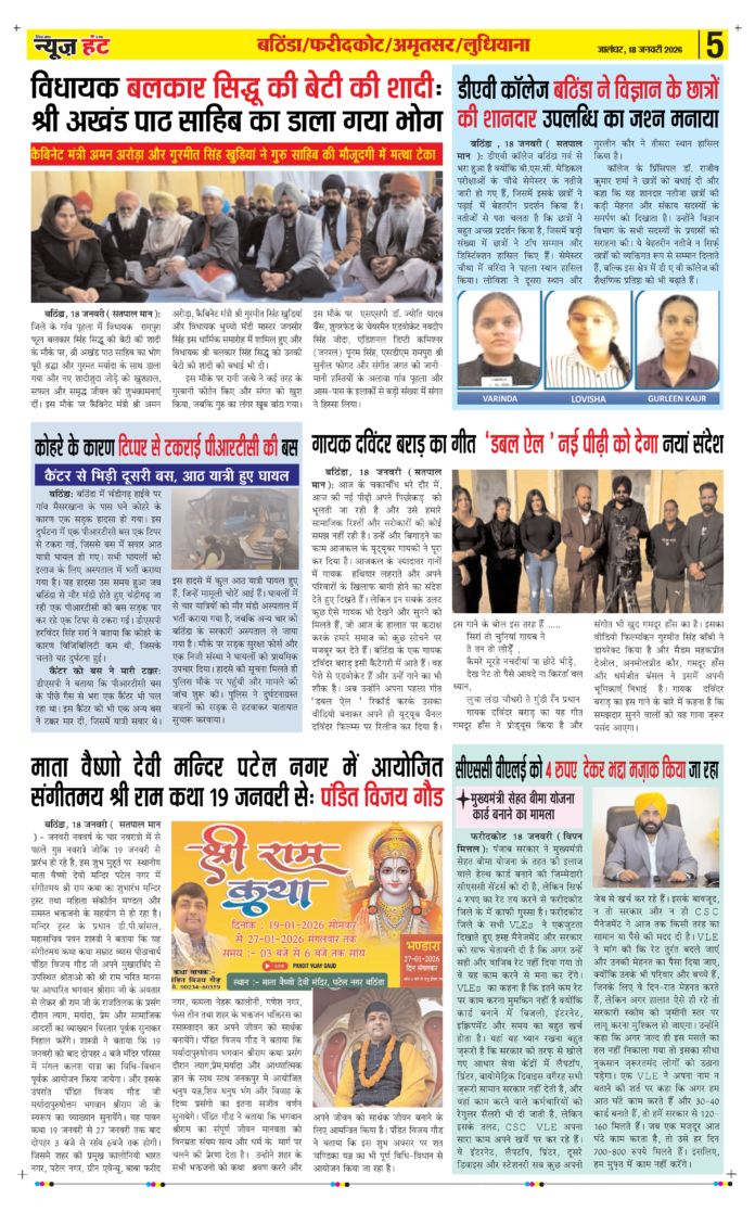 HomeE-Paper E-Paper News Hunt Daily Evening E-paper 18-01-2026 Page 5 By newshunt January 18, 2026 0 6 FacebookTwitterPinterestWhatsAppTelegramCopy URL Share FacebookTwitterPinterestWhatsAppTelegramCopy URL Previous articleNews Hunt Daily Evening E-paper 18-01-2026 Page 6Next articleNews Hunt Daily Evening E-paper 18-01-2026 Page 4 newshunthttp://newshunt.info Related Articles E-Paper News Hunt Daily Evening E-paper 24-01-2026 Page 1 E-Paper News Hunt Daily Evening E-paper 24-01-2026 Page 2 E-Paper News Hunt Daily Evening E-paper 24-01-2026 Page 3 LEAVE A REPLY Cancel reply Comment: Please enter your comment! Name:* Please enter your name here Email:* You have entered an incorrect email address! Please enter your email address here Website: Save my name, email, and website in this browser for the next time I comment. Stay Connected0FansLike3,912FollowersFollow22,800SubscribersSubscribe - Advertisement - Latest Articles E-Paper News Hunt Daily Evening E-paper 24-01-2026 Page 1 E-Paper News Hunt Daily Evening E-paper 24-01-2026 Page 2 E-Paper News Hunt Daily Evening E-paper 24-01-2026 Page 3 E-Paper News Hunt Daily Evening E-paper 24-01-2026 Page 4 E-Paper News Hunt Daily Evening E-paper 24-01-2026 Page 5 Load more
