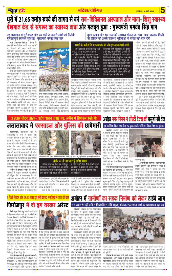 HomeE-Paper E-Paper News Hunt Daily Evening E-paper 18-03-2026 Page 5 By newshunt March 18, 2026 0 5 FacebookTwitterPinterestWhatsAppTelegramCopy URL Tags#breakingnewslatestnewsNews Huntpunjablatestnews Share FacebookTwitterPinterestWhatsAppTelegramCopy URL Previous articleNews Hunt Daily Evening E-paper 18-03-2026 Page 6Next articleNews Hunt Daily Evening E-paper 18-03-2026 Page 4 newshunthttp://newshunt.info Related Articles International ईरान का युद्ध में फंसे रहना क्या रूस की आर्थिक मुश्किलों को दूर कर पाएगा? International अली लारिजानी की मौत से गहराया ईरान में लीडरशिप का संकट News Hunt TV Sat Sharma highlights winter power crisis of J&K in Rajya Sabha, seeks strengthening of Power Infrastructure LEAVE A REPLY Cancel reply Comment: Please enter your comment! Name:* Please enter your name here Email:* You have entered an incorrect email address! Please enter your email address here Website: Save my name, email, and website in this browser for the next time I comment. Stay Connected0FansLike3,912FollowersFollow22,800SubscribersSubscribe - Advertisement - Latest Articles International ईरान का युद्ध में फंसे रहना क्या रूस की आर्थिक मुश्किलों को दूर कर पाएगा? International अली लारिजानी की मौत से गहराया ईरान में लीडरशिप का संकट News Hunt TV Sat Sharma highlights winter power crisis of J&K in Rajya Sabha, seeks strengthening of Power Infrastructure News Hunt TV कांग्रेस प्रतिनिधिमंडल ने एसईसी से मुलाकात की, आवश्यक पूर्व शर्तों के बाद पीआरआई के शीघ्र चुनाव कराने की मांग की। National शहीद-ए-आजम सरदार भगत सिंह नेशनल मैराथन 22 को माहिलपुर में: जय कृष्ण सिंह रौड़ी Load more