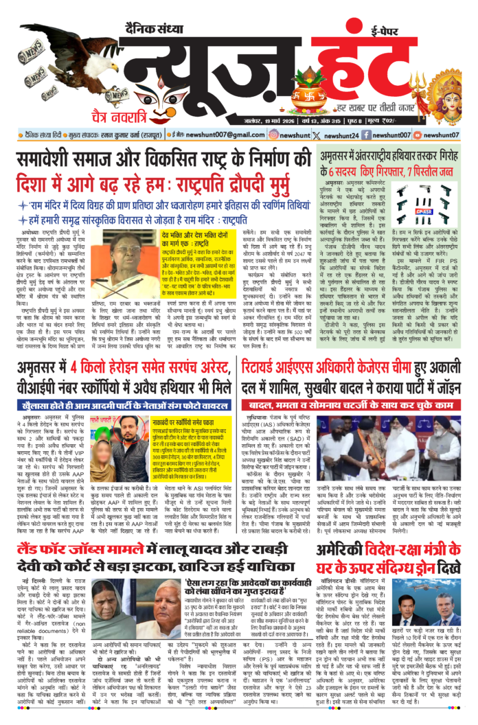News Hunt Daily Evening E-paper 19-03-2026 Page 1