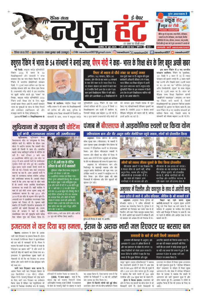 HomeE-Paper E-Paper News Hunt Daily Evening E-Paper 19-06-2025 Page 1 By newshunt June 19, 2025 0 33 FacebookTwitterPinterestWhatsAppTelegramCopy URL Tags#breakingnews#newshunt Share FacebookTwitterPinterestWhatsAppTelegramCopy URL Previous articleNews Hunt Daily Evening E-Paper 19-06-2025 Page 2Next articleNews Hunt Daily Evening E-Paper 20-06-2025 Page 8 newshunthttp://newshunt.info Related Articles E-Paper News Hunt Daily Evening E-paper 13-12-2025 Page 1 E-Paper News Hunt Daily Evening E-paper 13-12-2025 Page 2 E-Paper News Hunt Daily Evening E-paper 13-12-2025 Page 3 LEAVE A REPLY Cancel reply Comment: Please enter your comment! Name:* Please enter your name here Email:* You have entered an incorrect email address! Please enter your email address here Website: Save my name, email, and website in this browser for the next time I comment. Stay Connected0FansLike3,912FollowersFollow22,800SubscribersSubscribe - Advertisement - Latest Articles E-Paper News Hunt Daily Evening E-paper 13-12-2025 Page 1 E-Paper News Hunt Daily Evening E-paper 13-12-2025 Page 2 E-Paper News Hunt Daily Evening E-paper 13-12-2025 Page 3 E-Paper News Hunt Daily Evening E-paper 13-12-2025 Page 4 E-Paper News Hunt Daily Evening E-paper 13-12-2025 Page 5 Load more