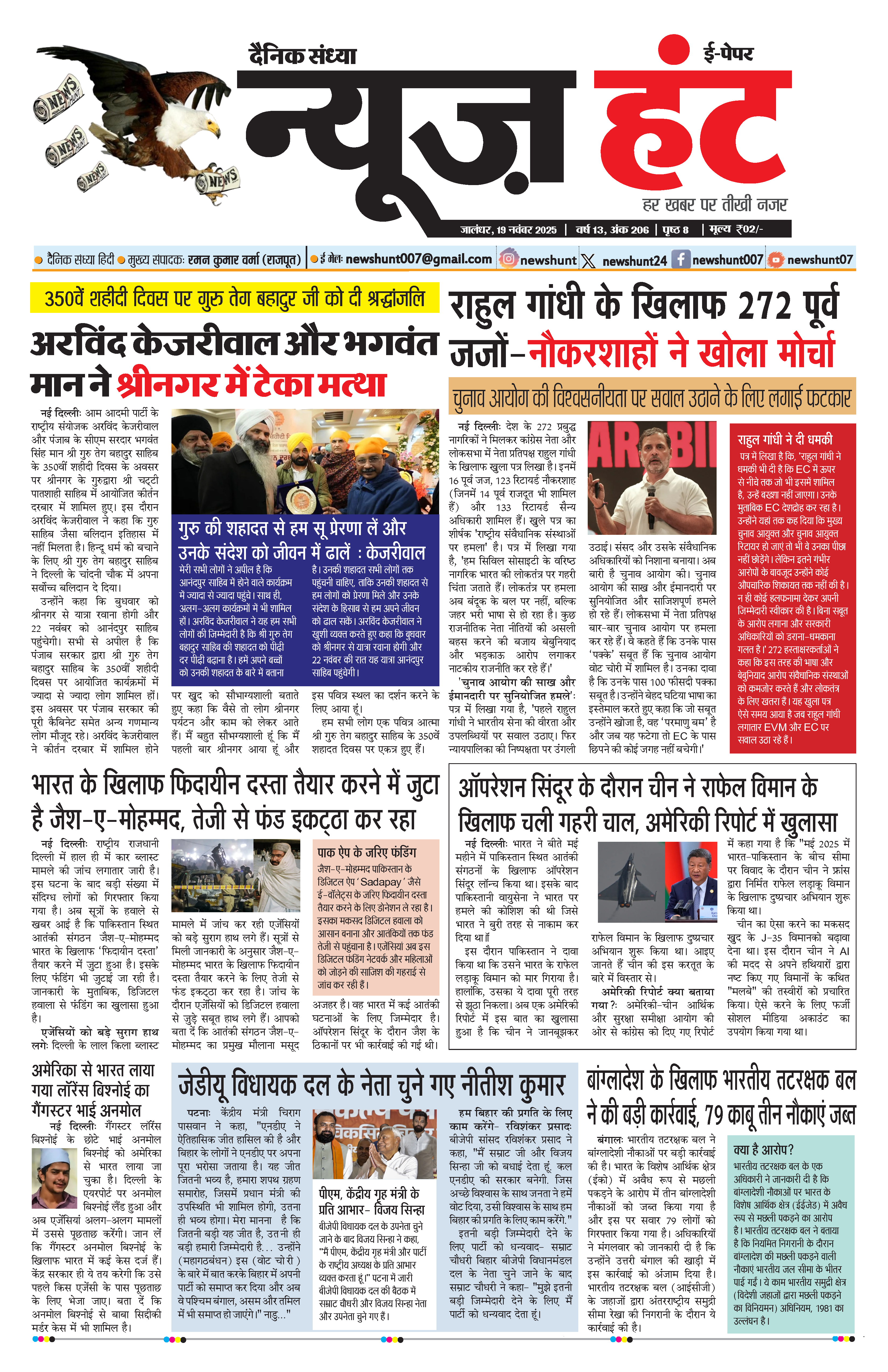 HomeE-Paper E-Paper News Hunt Daily Evening E-Paper 19-11-2025 Page 1 By newshunt November 19, 2025 0 12 FacebookTwitterPinterestWhatsAppTelegramCopy URL Share FacebookTwitterPinterestWhatsAppTelegramCopy URL Previous articleNews Hunt Daily Evening E-Paper 19-11-2025 Page 2Next articleNews Hunt E-paper 25-11-2025 Page 8 newshunthttp://newshunt.info Related Articles E-Paper News Hunt Daily Evening E-paper 24-01-2026 Page 1 E-Paper News Hunt Daily Evening E-paper 24-01-2026 Page 2 E-Paper News Hunt Daily Evening E-paper 24-01-2026 Page 3 LEAVE A REPLY Cancel reply Comment: Please enter your comment! Name:* Please enter your name here Email:* You have entered an incorrect email address! Please enter your email address here Website: Save my name, email, and website in this browser for the next time I comment. Stay Connected0FansLike3,912FollowersFollow22,800SubscribersSubscribe - Advertisement - Latest Articles E-Paper News Hunt Daily Evening E-paper 24-01-2026 Page 1 E-Paper News Hunt Daily Evening E-paper 24-01-2026 Page 2 E-Paper News Hunt Daily Evening E-paper 24-01-2026 Page 3 E-Paper News Hunt Daily Evening E-paper 24-01-2026 Page 4 E-Paper News Hunt Daily Evening E-paper 24-01-2026 Page 5 Load more