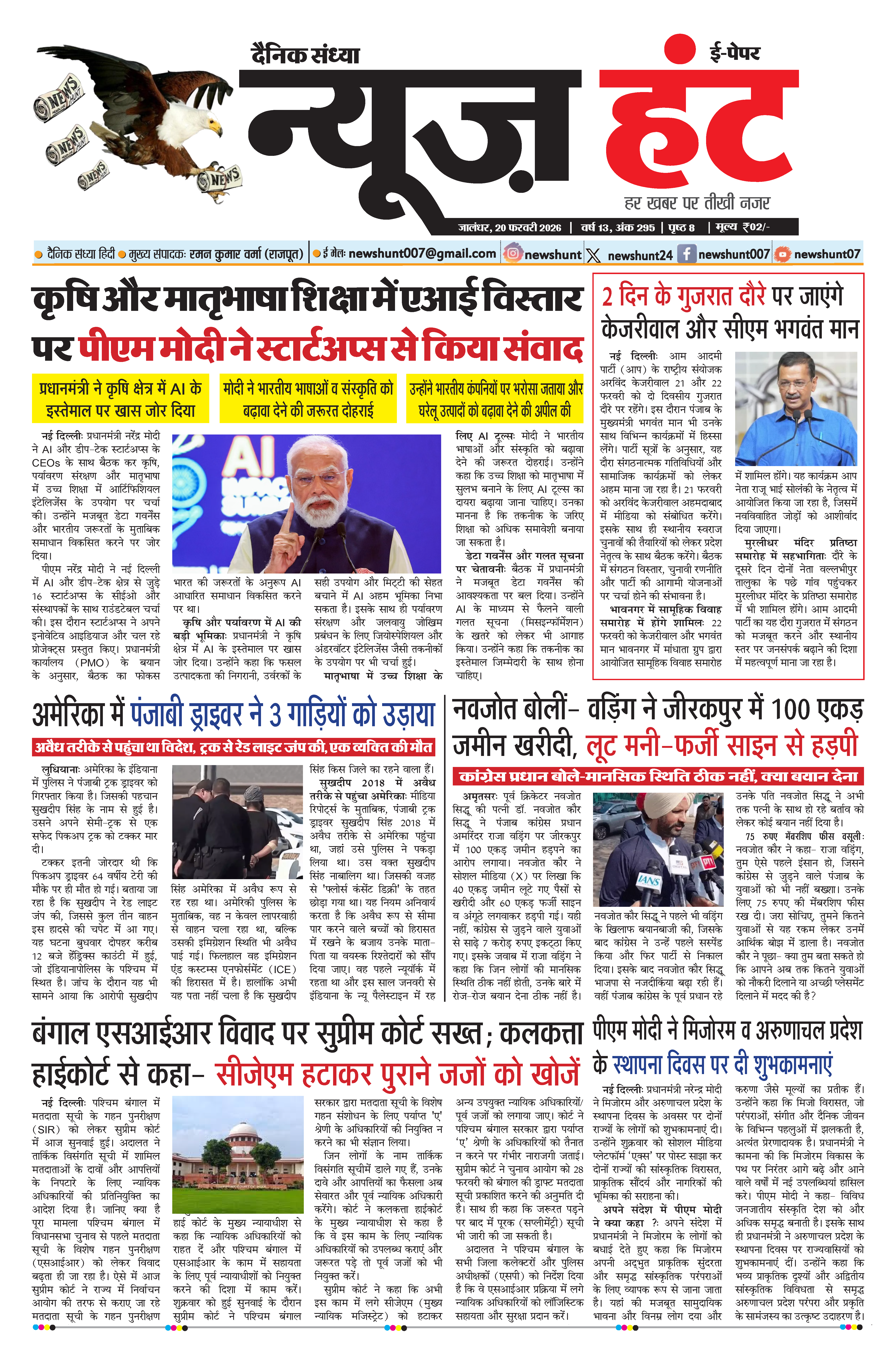 News Hunt Daily Evening E-paper 20-02-2026 Page 1