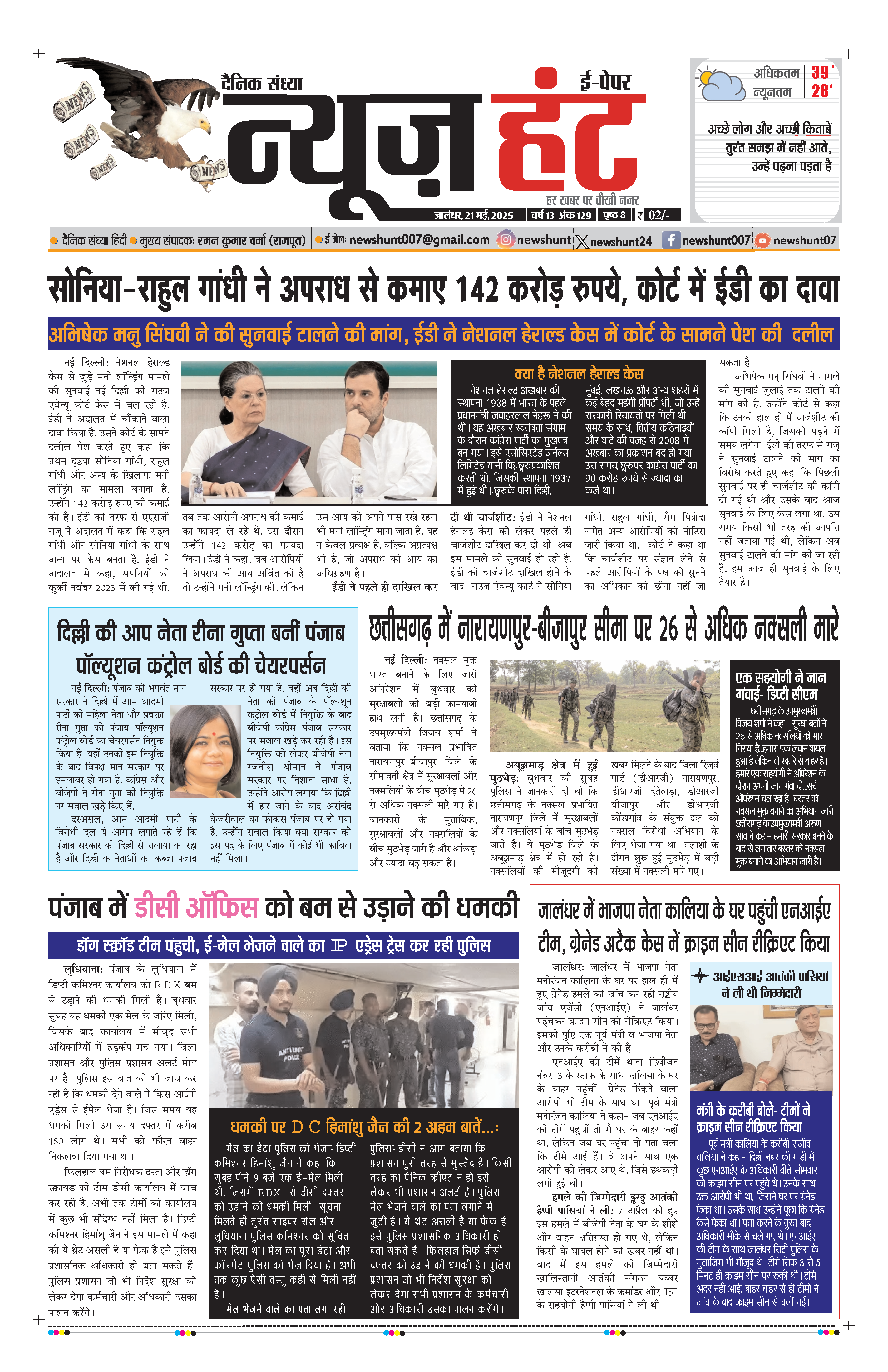 HomeE-Paper E-Paper News Hunt Daily Evening E-Paper 21-05-2025 Page 1 By newshunt May 21, 2025 0 31 FacebookTwitterPinterestWhatsAppTelegramCopy URL Tags#breakingnews#epaperlatest newslatestnewspunjablatestnews Share FacebookTwitterPinterestWhatsAppTelegramCopy URL Previous articleNews Hunt Daily Evening E-Paper 21-05-2025 Page 2Next articleNews Hunt Daily Evening E-Paper 22-05-2025 Page 8 newshunthttp://newshunt.info Related Articles E-Paper News Hunt Daily Evening E-paper 13-12-2025 Page 1 E-Paper News Hunt Daily Evening E-paper 13-12-2025 Page 2 E-Paper News Hunt Daily Evening E-paper 13-12-2025 Page 3 LEAVE A REPLY Cancel reply Comment: Please enter your comment! Name:* Please enter your name here Email:* You have entered an incorrect email address! Please enter your email address here Website: Save my name, email, and website in this browser for the next time I comment. Stay Connected0FansLike3,912FollowersFollow22,800SubscribersSubscribe - Advertisement - Latest Articles E-Paper News Hunt Daily Evening E-paper 13-12-2025 Page 1 E-Paper News Hunt Daily Evening E-paper 13-12-2025 Page 2 E-Paper News Hunt Daily Evening E-paper 13-12-2025 Page 3 E-Paper News Hunt Daily Evening E-paper 13-12-2025 Page 4 E-Paper News Hunt Daily Evening E-paper 13-12-2025 Page 5 Load more