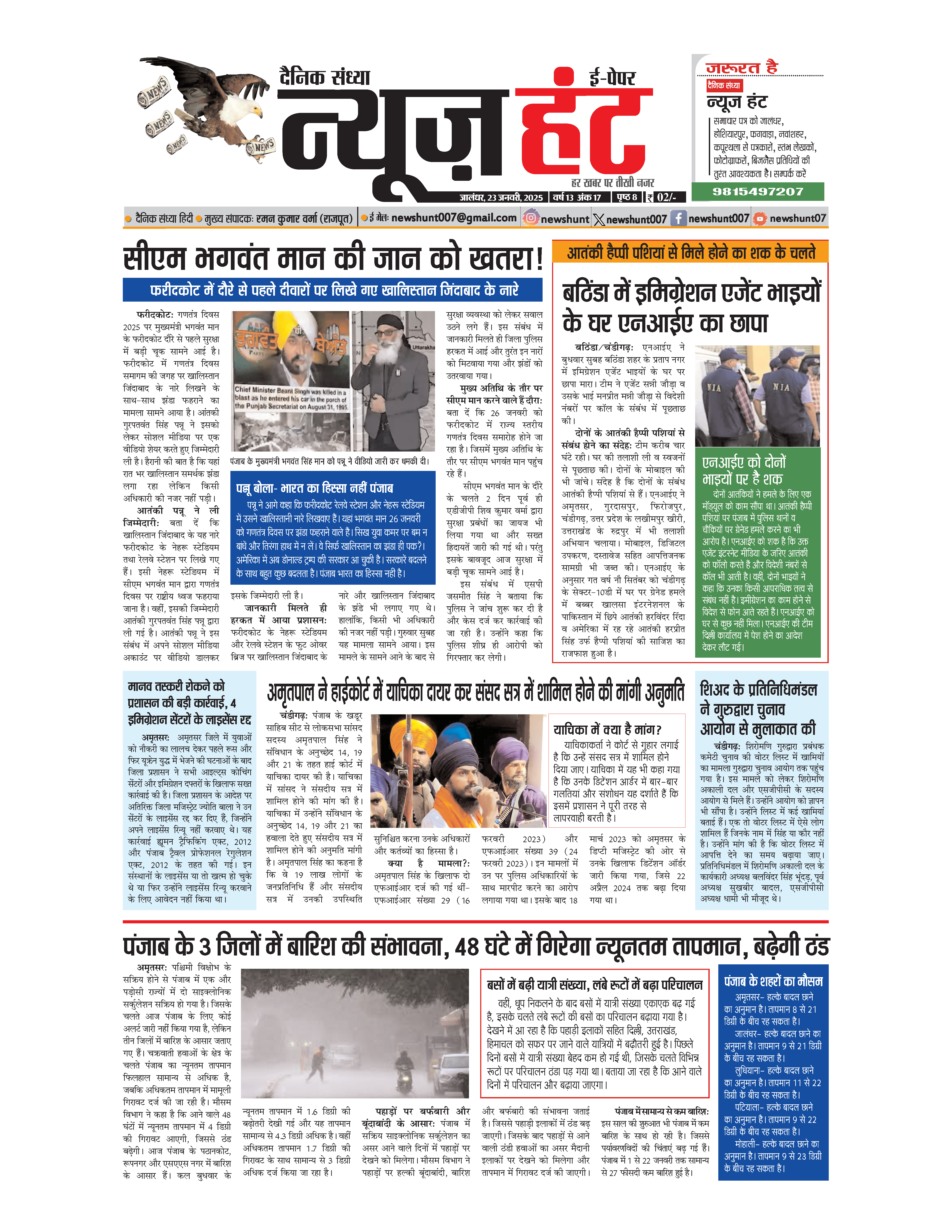 HomeE-Paper E-Paper News Hunt Daily Evening E-Paper 23-01-2025 Page 1 By newshunt January 23, 2025 0 134 FacebookTwitterPinterestWhatsAppTelegramCopy URL Tags#breakingnews#epaper#news#newshuntlatestnewsNews Hunt Share FacebookTwitterPinterestWhatsAppTelegramCopy URL Previous articleNews Hunt Daily Evening E-Paper 23-01-2025 Page 2Next articleNews Hunt Daily Evening E-Paper 24-01-2025 Page 8 newshunthttp://newshunt.info Related Articles E-Paper News Hunt Daily Evening E-paper 15-02-2026 Page 1 E-Paper News Hunt Daily Evening E-paper 15-02-2026 Page 2 E-Paper News Hunt Daily Evening E-paper 15-02-2026 Page 3 LEAVE A REPLY Cancel reply Comment: Please enter your comment! Name:* Please enter your name here Email:* You have entered an incorrect email address! Please enter your email address here Website: Save my name, email, and website in this browser for the next time I comment. Stay Connected0FansLike3,912FollowersFollow22,800SubscribersSubscribe - Advertisement - Latest Articles E-Paper News Hunt Daily Evening E-paper 15-02-2026 Page 1 E-Paper News Hunt Daily Evening E-paper 15-02-2026 Page 2 E-Paper News Hunt Daily Evening E-paper 15-02-2026 Page 3 E-Paper News Hunt Daily Evening E-paper 15-02-2026 Page 4 E-Paper News Hunt Daily Evening E-paper 15-02-2026 Page 5 Load more