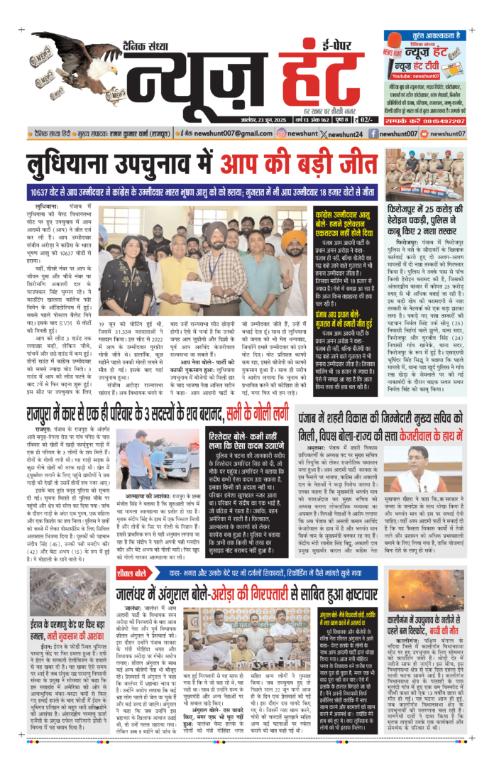 HomeE-Paper E-Paper News Hunt Daily Evening E-Paper 23-06-2025 Page 1 By newshunt June 23, 2025 0 33 FacebookTwitterPinterestWhatsAppTelegramCopy URL Tags#breakingnews#newshunt Share FacebookTwitterPinterestWhatsAppTelegramCopy URL Previous articleNews Hunt Daily Evening E-Paper 23-06-2025 Page 2Next articleNews Hunt Daily Evening E-Paper 24-06-2025 Page 8 newshunthttp://newshunt.info Related Articles E-Paper News Hunt Daily Evening E-paper 30-11-2025 Page 1 E-Paper News Hunt Daily Evening E-paper 30-11-2025 Page 2 E-Paper News Hunt Daily Evening E-paper 30-11-2025 Page 3 LEAVE A REPLY Cancel reply Comment: Please enter your comment! Name:* Please enter your name here Email:* You have entered an incorrect email address! Please enter your email address here Website: Save my name, email, and website in this browser for the next time I comment. Stay Connected0FansLike3,912FollowersFollow22,800SubscribersSubscribe - Advertisement - Latest Articles E-Paper News Hunt Daily Evening E-paper 30-11-2025 Page 1 E-Paper News Hunt Daily Evening E-paper 30-11-2025 Page 2 E-Paper News Hunt Daily Evening E-paper 30-11-2025 Page 3 E-Paper News Hunt Daily Evening E-paper 30-11-2025 Page 4 E-Paper News Hunt Daily Evening E-paper 30-11-2025 Page 5 Load more