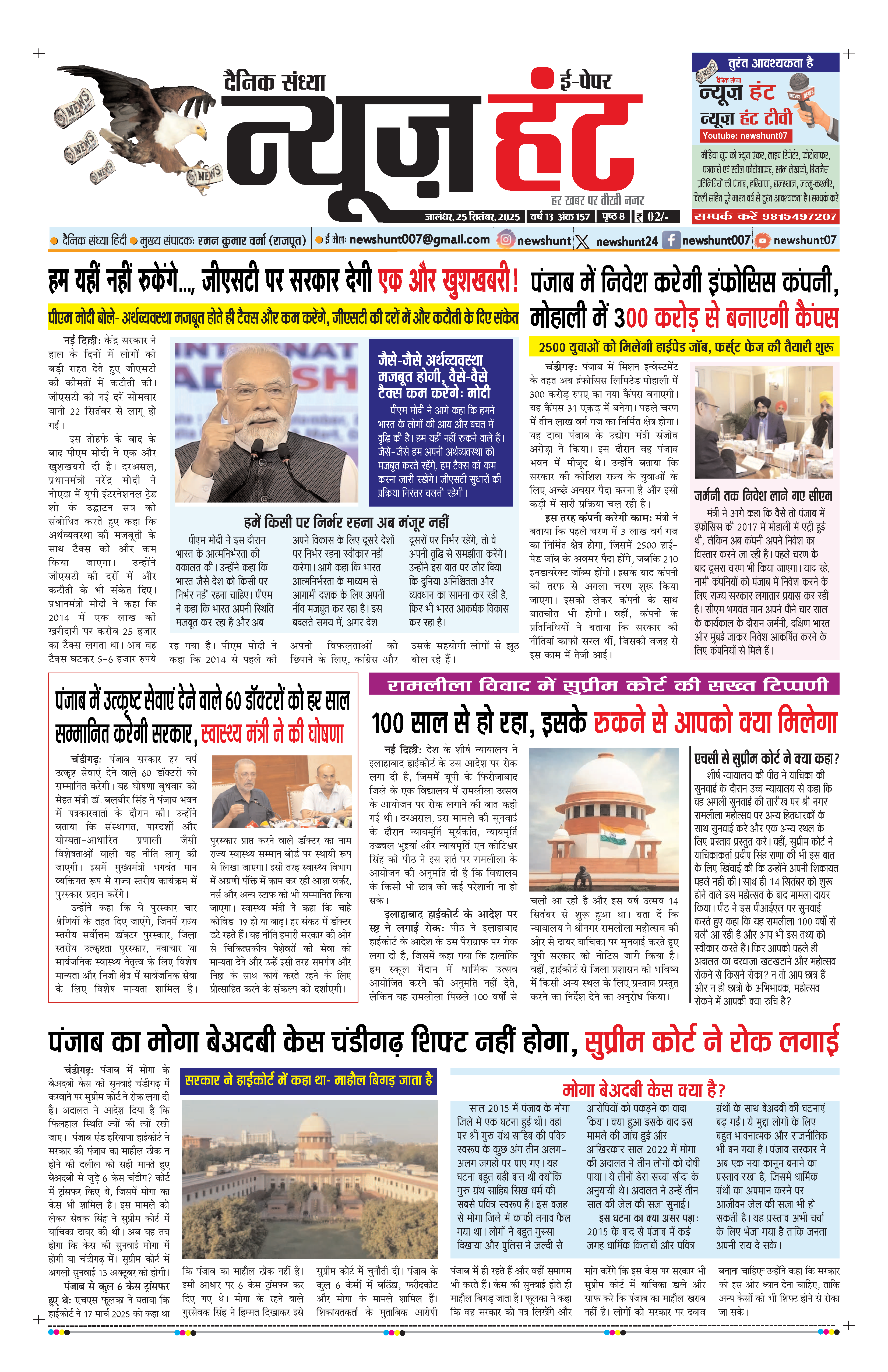 HomeE-Paper E-Paper News Hunt Daily Evening E-Paper 25-09-2025 Page 1 By newshunt September 25, 2025 0 50 FacebookTwitterPinterestWhatsAppTelegramCopy URL Share FacebookTwitterPinterestWhatsAppTelegramCopy URL Previous articleNews Hunt Daily Evening E-Paper 25-09-2025 Page 2Next articleNews Hunt Daily Evening E-Paper 26-09-2025 Page 8 newshunthttp://newshunt.info Related Articles E-Paper News Hunt Daily Evening E-paper 24-02-2026 Page 1 E-Paper News Hunt Daily Evening E-paper 24-02-2026 Page 2 E-Paper News Hunt Daily Evening E-paper 24-02-2026 Page 3 LEAVE A REPLY Cancel reply Comment: Please enter your comment! Name:* Please enter your name here Email:* You have entered an incorrect email address! Please enter your email address here Website: Save my name, email, and website in this browser for the next time I comment. Stay Connected0FansLike3,912FollowersFollow22,800SubscribersSubscribe - Advertisement - Latest Articles E-Paper News Hunt Daily Evening E-paper 24-02-2026 Page 1 E-Paper News Hunt Daily Evening E-paper 24-02-2026 Page 2 E-Paper News Hunt Daily Evening E-paper 24-02-2026 Page 3 E-Paper News Hunt Daily Evening E-paper 24-02-2026 Page 4 E-Paper News Hunt Daily Evening E-paper 24-02-2026 Page 5 Load more