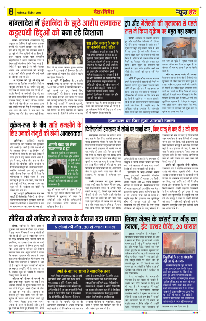HomeE-Paper E-Paper News Hunt Daily Evening E-paper 27-12-2025 Page 8 By newshunt December 27, 2025 0 11 FacebookTwitterPinterestWhatsAppTelegramCopy URL Share FacebookTwitterPinterestWhatsAppTelegramCopy URL Previous articleNews Hunt Daily Evening E-paper 26-12-2025 Page 1Next articleNews Hunt Daily Evening E-paper 27-12-2025 Page 7 newshunthttp://newshunt.info Related Articles E-Paper News Hunt Daily Evening E-paper 24-01-2026 Page 1 E-Paper News Hunt Daily Evening E-paper 24-01-2026 Page 2 E-Paper News Hunt Daily Evening E-paper 24-01-2026 Page 3 LEAVE A REPLY Cancel reply Comment: Please enter your comment! Name:* Please enter your name here Email:* You have entered an incorrect email address! Please enter your email address here Website: Save my name, email, and website in this browser for the next time I comment. Stay Connected0FansLike3,912FollowersFollow22,800SubscribersSubscribe - Advertisement - Latest Articles E-Paper News Hunt Daily Evening E-paper 24-01-2026 Page 1 E-Paper News Hunt Daily Evening E-paper 24-01-2026 Page 2 E-Paper News Hunt Daily Evening E-paper 24-01-2026 Page 3 E-Paper News Hunt Daily Evening E-paper 24-01-2026 Page 4 E-Paper News Hunt Daily Evening E-paper 24-01-2026 Page 5 Load more