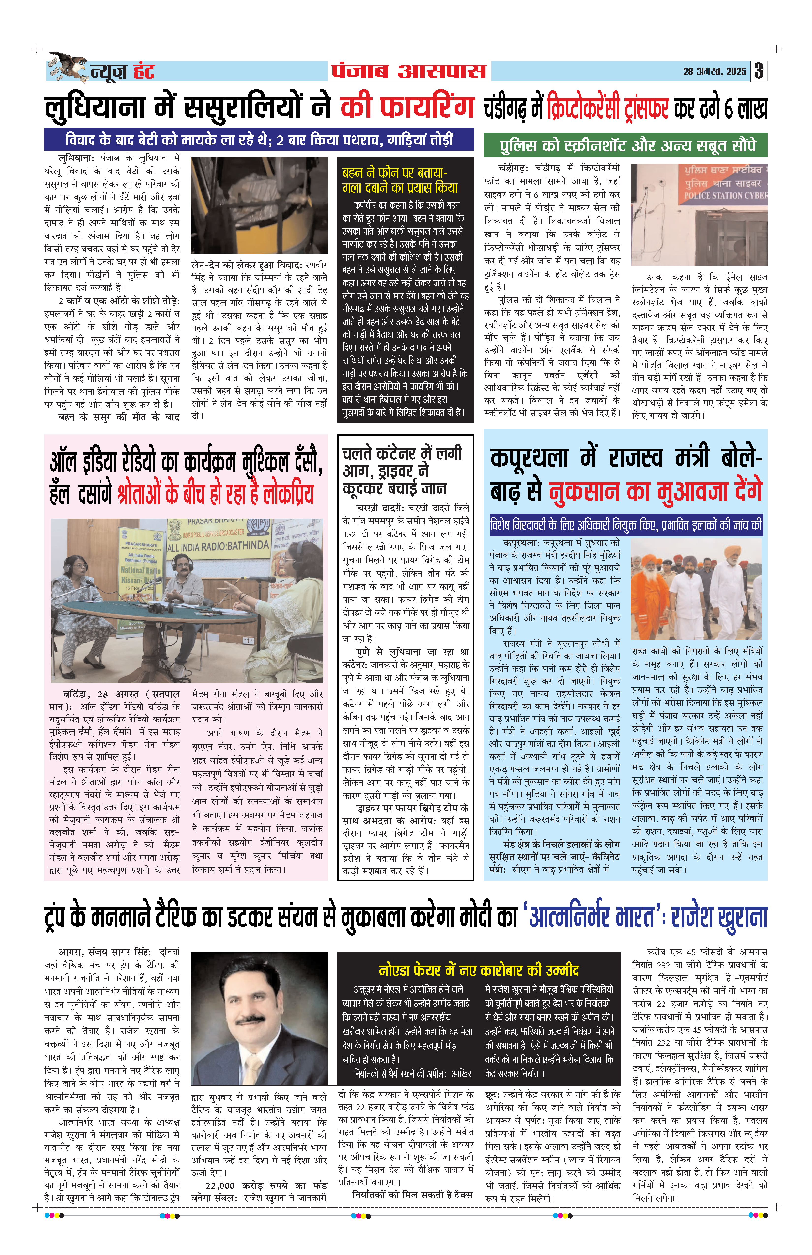 HomeE-Paper E-Paper News Hunt Daily Evening E-Paper 28-08-2025 Page 3 By newshunt August 28, 2025 0 31 FacebookTwitterPinterestWhatsAppTelegramCopy URL Share FacebookTwitterPinterestWhatsAppTelegramCopy URL Previous articleNews Hunt Daily Evening E-Paper 28-08-2025 Page 4Next articleNews Hunt Daily Evening E-Paper 28-08-2025 Page 2 newshunthttp://newshunt.info Related Articles E-Paper News Hunt Daily Evening E-paper 24-01-2026 Page 1 E-Paper News Hunt Daily Evening E-paper 24-01-2026 Page 2 E-Paper News Hunt Daily Evening E-paper 24-01-2026 Page 3 LEAVE A REPLY Cancel reply Comment: Please enter your comment! Name:* Please enter your name here Email:* You have entered an incorrect email address! Please enter your email address here Website: Save my name, email, and website in this browser for the next time I comment. Stay Connected0FansLike3,912FollowersFollow22,800SubscribersSubscribe - Advertisement - Latest Articles E-Paper News Hunt Daily Evening E-paper 24-01-2026 Page 1 E-Paper News Hunt Daily Evening E-paper 24-01-2026 Page 2 E-Paper News Hunt Daily Evening E-paper 24-01-2026 Page 3 E-Paper News Hunt Daily Evening E-paper 24-01-2026 Page 4 E-Paper News Hunt Daily Evening E-paper 24-01-2026 Page 5 Load more