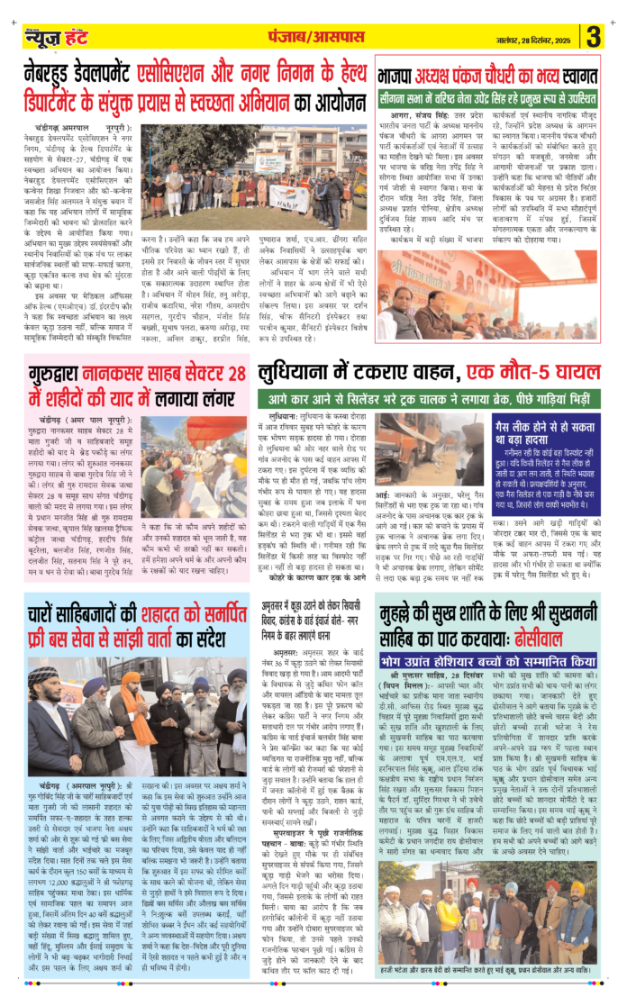 HomeE-Paper E-Paper News Hunt Daily Evening E-paper 28-12-2025 Page 3 By newshunt December 28, 2025 0 13 FacebookTwitterPinterestWhatsAppTelegramCopy URL Tags#newslatestnewsNews Huntpunjablatestnews Share FacebookTwitterPinterestWhatsAppTelegramCopy URL Previous articleNews Hunt Daily Evening E-paper 28-12-2025 Page 4Next articleNews Hunt Daily Evening E-paper 28-12-2025 Page 2 newshunthttp://newshunt.info Related Articles E-Paper News Hunt Daily Evening E-paper 21-01-2026 Page 1 E-Paper News Hunt Daily Evening E-paper 21-01-2026 Page 2 E-Paper News Hunt Daily Evening E-paper 21-01-2026 Page 3 LEAVE A REPLY Cancel reply Comment: Please enter your comment! Name:* Please enter your name here Email:* You have entered an incorrect email address! Please enter your email address here Website: Save my name, email, and website in this browser for the next time I comment. Stay Connected0FansLike3,912FollowersFollow22,800SubscribersSubscribe - Advertisement - Latest Articles E-Paper News Hunt Daily Evening E-paper 21-01-2026 Page 1 E-Paper News Hunt Daily Evening E-paper 21-01-2026 Page 2 E-Paper News Hunt Daily Evening E-paper 21-01-2026 Page 3 E-Paper News Hunt Daily Evening E-paper 21-01-2026 Page 4 E-Paper News Hunt Daily Evening E-paper 21-01-2026 Page 5 Load more