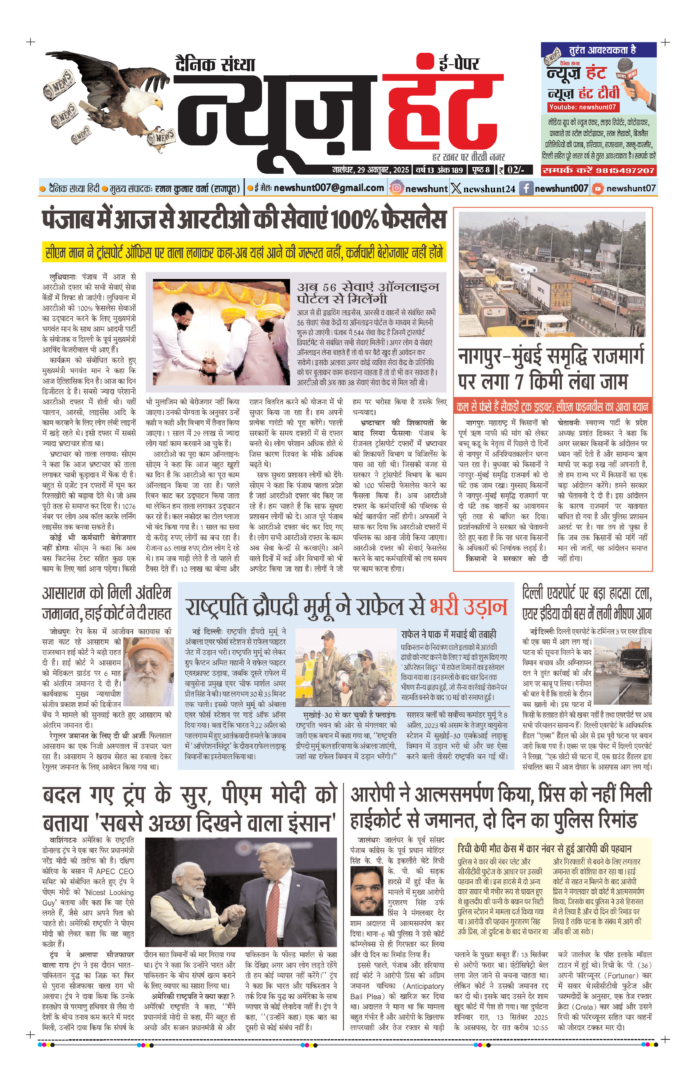 HomeE-Paper E-Paper News Hunt Daily Evening E-Paper 29-10-2025 Page 1 By newshunt October 29, 2025 0 13 FacebookTwitterPinterestWhatsAppTelegramCopy URL Share FacebookTwitterPinterestWhatsAppTelegramCopy URL Previous articleNews Hunt Daily Evening E-Paper 29-10-2025 Page 2Next articleNews Hunt Daily Evening E-Paper 30-10-2025 Page 8 newshunthttp://newshunt.info Related Articles E-Paper News Hunt Daily Evening E-paper 30-11-2025 Page 1 E-Paper News Hunt Daily Evening E-paper 30-11-2025 Page 2 E-Paper News Hunt Daily Evening E-paper 30-11-2025 Page 3 LEAVE A REPLY Cancel reply Comment: Please enter your comment! Name:* Please enter your name here Email:* You have entered an incorrect email address! Please enter your email address here Website: Save my name, email, and website in this browser for the next time I comment. Stay Connected0FansLike3,912FollowersFollow22,800SubscribersSubscribe - Advertisement - Latest Articles E-Paper News Hunt Daily Evening E-paper 30-11-2025 Page 1 E-Paper News Hunt Daily Evening E-paper 30-11-2025 Page 2 E-Paper News Hunt Daily Evening E-paper 30-11-2025 Page 3 E-Paper News Hunt Daily Evening E-paper 30-11-2025 Page 4 E-Paper News Hunt Daily Evening E-paper 30-11-2025 Page 5 Load more