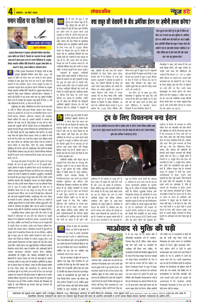 HomeE-Paper E-Paper News Hunt Daily Evening E-paper 30-03-2026 Page 4 By newshunt March 30, 2026 0 1 FacebookTwitterPinterestWhatsAppTelegramCopy URL Tags#newshuntlatest newslatestnewsNews Hunt Share FacebookTwitterPinterestWhatsAppTelegramCopy URL Previous articleNews Hunt Daily Evening E-paper 30-03-2026 Page 5Next articleNews Hunt Daily Evening E-paper 30-03-2026 Page 3 newshunthttp://newshunt.info Related Articles E-Paper News Hunt Daily Evening E-paper 30-03-2026 Page 1 E-Paper News Hunt Daily Evening E-paper 30-03-2026 Page 2 E-Paper News Hunt Daily Evening E-paper 30-03-2026 Page 3 LEAVE A REPLY Cancel reply Comment: Please enter your comment! Name:* Please enter your name here Email:* You have entered an incorrect email address! Please enter your email address here Website: Save my name, email, and website in this browser for the next time I comment. Stay Connected0FansLike3,912FollowersFollow22,900SubscribersSubscribe - Advertisement - Latest Articles E-Paper News Hunt Daily Evening E-paper 30-03-2026 Page 1 E-Paper News Hunt Daily Evening E-paper 30-03-2026 Page 2 E-Paper News Hunt Daily Evening E-paper 30-03-2026 Page 3 E-Paper News Hunt Daily Evening E-paper 30-03-2026 Page 5 E-Paper News Hunt Daily Evening E-paper 30-03-2026 Page 6 Load more