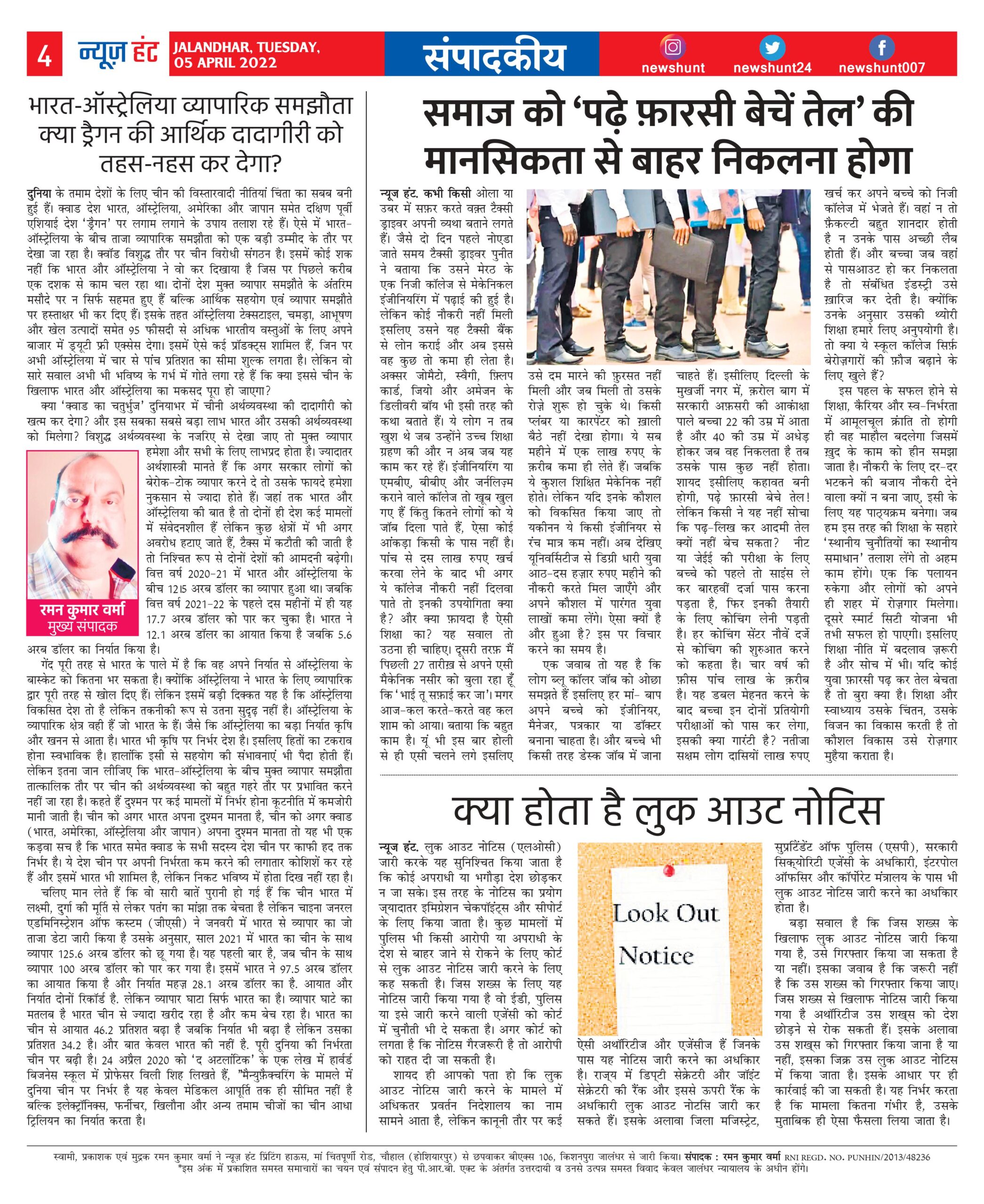 HomeE-Paper E-PaperNationalPunjab News Hunt Daily Evening E-Paper By newshunt April 5, 2022 0 217 FacebookTwitterPinterestWhatsAppTelegramCopy URL 5 April 2022 Page 4 #news #breakingnews #epaper #Newshunt #latestnews #LatestUpdate Share FacebookTwitterPinterestWhatsAppTelegramCopy URL Previous articleडा. अर्चना शर्मा सुसाईड केस खन्ना ने मामला उठाया मानवाधिकार आयोग के समक्ष दोषियों के विरुध कारवाई तथा पीडि़त परिवार को 10 लाख मुआवजे की मांगNext articleNews Hunt Daily Evening E-Paper newshunthttp://newshunt.info Related Articles E-Paper News Hunt Daily Evening E-paper 13-12-2025 Page 1 E-Paper News Hunt Daily Evening E-paper 13-12-2025 Page 2 E-Paper News Hunt Daily Evening E-paper 13-12-2025 Page 3 LEAVE A REPLY Cancel reply Comment: Please enter your comment! Name:* Please enter your name here Email:* You have entered an incorrect email address! Please enter your email address here Website: Save my name, email, and website in this browser for the next time I comment. Stay Connected0FansLike3,912FollowersFollow22,800SubscribersSubscribe - Advertisement - Latest Articles E-Paper News Hunt Daily Evening E-paper 13-12-2025 Page 1 E-Paper News Hunt Daily Evening E-paper 13-12-2025 Page 2 E-Paper News Hunt Daily Evening E-paper 13-12-2025 Page 3 E-Paper News Hunt Daily Evening E-paper 13-12-2025 Page 4 E-Paper News Hunt Daily Evening E-paper 13-12-2025 Page 5 Load more