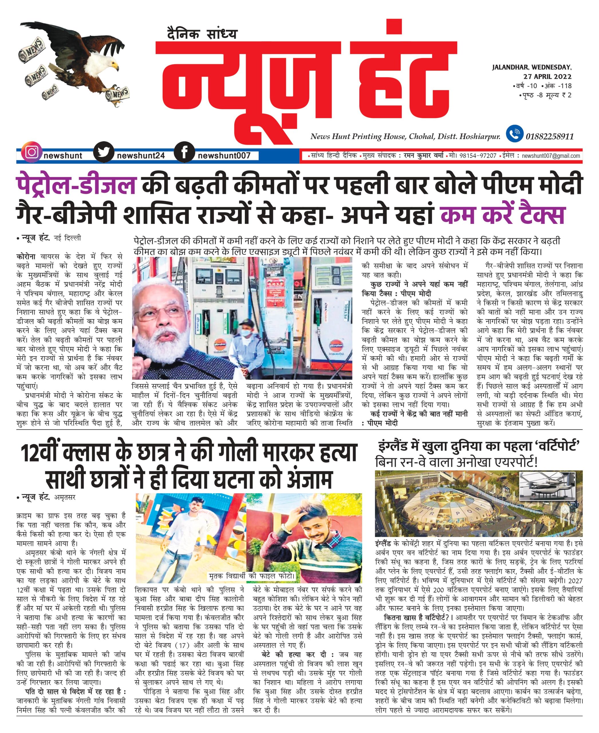 HomeE-Paper E-PaperNationalPunjab News Hunt Daily Evening E-Paper By newshunt April 27, 2022 0 229 FacebookTwitterPinterestWhatsAppTelegramCopy URL 27 April 2022 Page 1 #news #breakingnews #epaper #Newshunt #latestnews #LatestUpdates Share FacebookTwitterPinterestWhatsAppTelegramCopy URL Previous articleNews Hunt Daily Evening E-PaperNext articleNews Hunt Daily Evening E-Paper newshunthttp://newshunt.info Related Articles E-Paper News Hunt Daily Evening E-paper 13-12-2025 Page 1 E-Paper News Hunt Daily Evening E-paper 13-12-2025 Page 2 E-Paper News Hunt Daily Evening E-paper 13-12-2025 Page 3 LEAVE A REPLY Cancel reply Comment: Please enter your comment! Name:* Please enter your name here Email:* You have entered an incorrect email address! Please enter your email address here Website: Save my name, email, and website in this browser for the next time I comment. Stay Connected0FansLike3,912FollowersFollow22,800SubscribersSubscribe - Advertisement - Latest Articles E-Paper News Hunt Daily Evening E-paper 13-12-2025 Page 1 E-Paper News Hunt Daily Evening E-paper 13-12-2025 Page 2 E-Paper News Hunt Daily Evening E-paper 13-12-2025 Page 3 E-Paper News Hunt Daily Evening E-paper 13-12-2025 Page 4 E-Paper News Hunt Daily Evening E-paper 13-12-2025 Page 5 Load more
