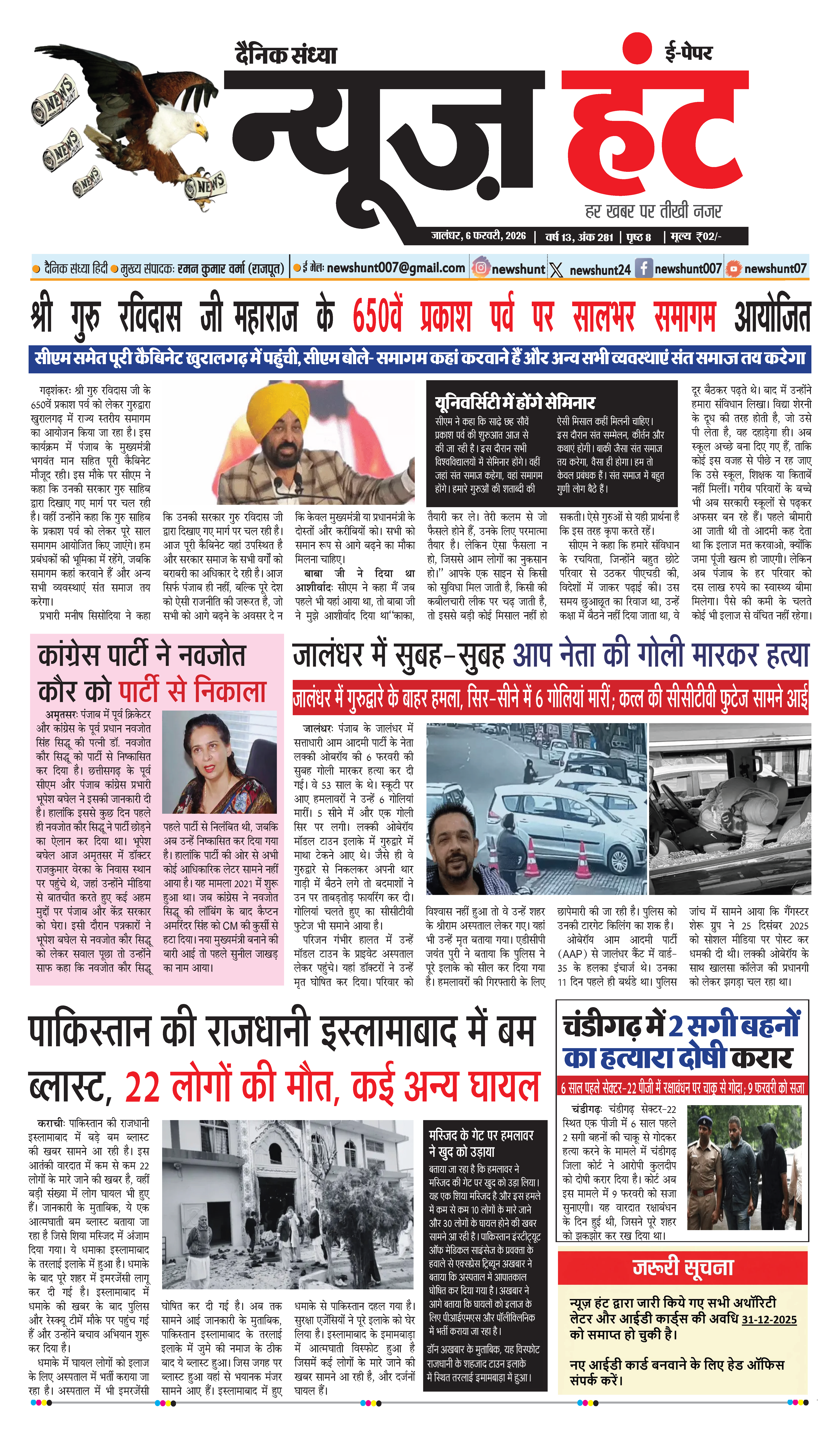 HomeE-Paper E-Paper News Hunt Daily Evening Newspaper 06-02-2026 Page 1 By newshunt February 6, 2026 0 4 FacebookTwitterPinterestWhatsAppTelegramCopy URL Tags#newshuntlatest newsNews Hunt Share FacebookTwitterPinterestWhatsAppTelegramCopy URL Previous articleNews Hunt Daily Evening Newspaper 06-02-2026 Page 2Next articleNews Hunt Daily Evening E-paper 07-02-2026 Page 8 newshunthttp://newshunt.info Related Articles E-Paper News Hunt Daily Evening E-Paper 09-02-2026 Page 1 E-Paper News Hunt Daily Evening E-Paper 09-02-2026 Page 2 E-Paper News Hunt Daily Evening E-Paper 09-02-2026 Page 3 LEAVE A REPLY Cancel reply Comment: Please enter your comment! Name:* Please enter your name here Email:* You have entered an incorrect email address! Please enter your email address here Website: Save my name, email, and website in this browser for the next time I comment. Stay Connected0FansLike3,912FollowersFollow22,800SubscribersSubscribe - Advertisement - Latest Articles E-Paper News Hunt Daily Evening E-Paper 09-02-2026 Page 1 E-Paper News Hunt Daily Evening E-Paper 09-02-2026 Page 2 E-Paper News Hunt Daily Evening E-Paper 09-02-2026 Page 3 E-Paper News Hunt Daily Evening E-Paper 09-02-2026 Page 4 E-Paper News Hunt Daily Evening E-Paper 09-02-2026 Page 5 Load more