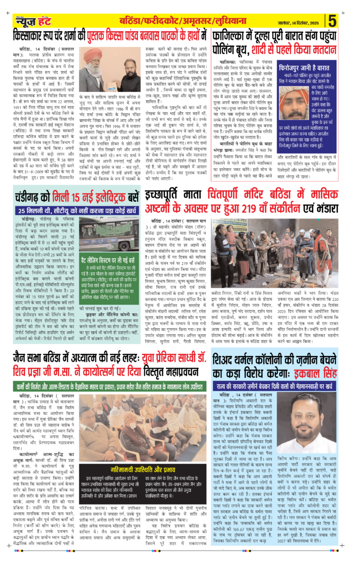 HomeE-Paper E-Paper News Hunt Daily Evening Newspaper 14-12-2025 Page 5 By newshunt December 14, 2025 0 3 FacebookTwitterPinterestWhatsAppTelegramCopy URL Share FacebookTwitterPinterestWhatsAppTelegramCopy URL Previous articleNews Hunt Daily Evening Newspaper 14-12-2025 Page 6Next articleNews Hunt Daily Evening Newspaper 14-12-2025 Page 4 newshunthttp://newshunt.info Related Articles E-Paper News Hunt Daily Evening Newspaper 14-12-2025 Page 1 E-Paper News Hunt Daily Evening Newspaper 14-12-2025 Page 2 E-Paper News Hunt Daily Evening Newspaper 14-12-2025 Page 3 LEAVE A REPLY Cancel reply Comment: Please enter your comment! Name:* Please enter your name here Email:* You have entered an incorrect email address! Please enter your email address here Website: Save my name, email, and website in this browser for the next time I comment. Stay Connected0FansLike3,912FollowersFollow22,800SubscribersSubscribe - Advertisement - Latest Articles E-Paper News Hunt Daily Evening Newspaper 14-12-2025 Page 1 E-Paper News Hunt Daily Evening Newspaper 14-12-2025 Page 2 E-Paper News Hunt Daily Evening Newspaper 14-12-2025 Page 3 E-Paper News Hunt Daily Evening Newspaper 14-12-2025 Page 4 E-Paper News Hunt Daily Evening Newspaper 14-12-2025 Page 6 Load more