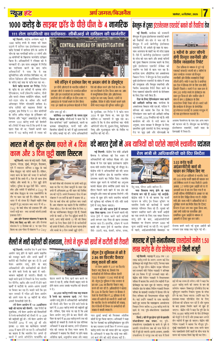 HomeE-Paper E-Paper News Hunt Daily Evening Newspaper 14-12-2025 Page 7 By newshunt December 14, 2025 0 3 FacebookTwitterPinterestWhatsAppTelegramCopy URL Share FacebookTwitterPinterestWhatsAppTelegramCopy URL Previous articleNews Hunt Daily Evening Newspaper 14-12-2025 Page 8Next articleNews Hunt Daily Evening Newspaper 14-12-2025 Page 6 newshunthttp://newshunt.info Related Articles E-Paper News Hunt Daily Evening Newspaper 14-12-2025 Page 1 E-Paper News Hunt Daily Evening Newspaper 14-12-2025 Page 2 E-Paper News Hunt Daily Evening Newspaper 14-12-2025 Page 3 LEAVE A REPLY Cancel reply Comment: Please enter your comment! Name:* Please enter your name here Email:* You have entered an incorrect email address! Please enter your email address here Website: Save my name, email, and website in this browser for the next time I comment. Stay Connected0FansLike3,912FollowersFollow22,800SubscribersSubscribe - Advertisement - Latest Articles E-Paper News Hunt Daily Evening Newspaper 14-12-2025 Page 1 E-Paper News Hunt Daily Evening Newspaper 14-12-2025 Page 2 E-Paper News Hunt Daily Evening Newspaper 14-12-2025 Page 3 E-Paper News Hunt Daily Evening Newspaper 14-12-2025 Page 4 E-Paper News Hunt Daily Evening Newspaper 14-12-2025 Page 5 Load more